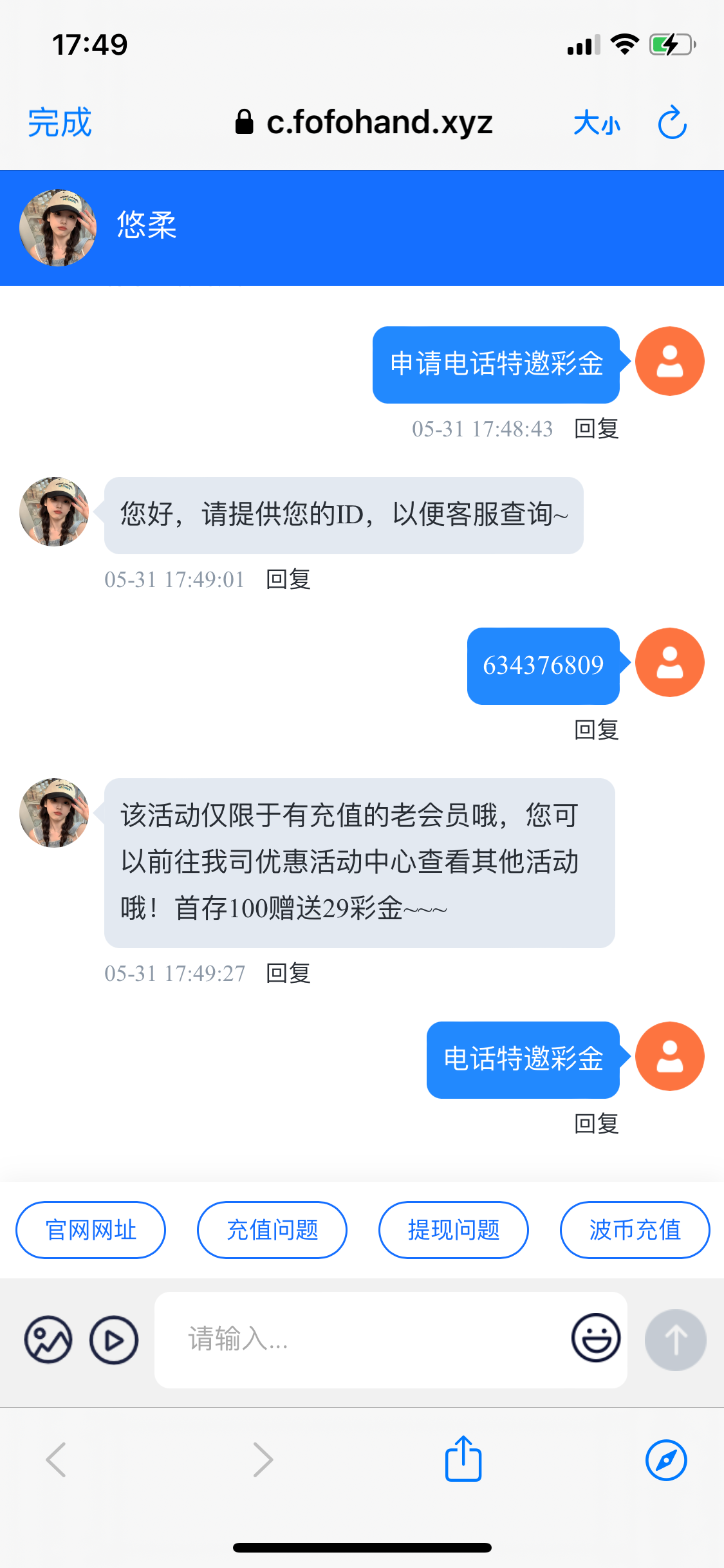 经查询您同IP有注册多账号申请彩金,不能给您派送,祝您好运,再见~