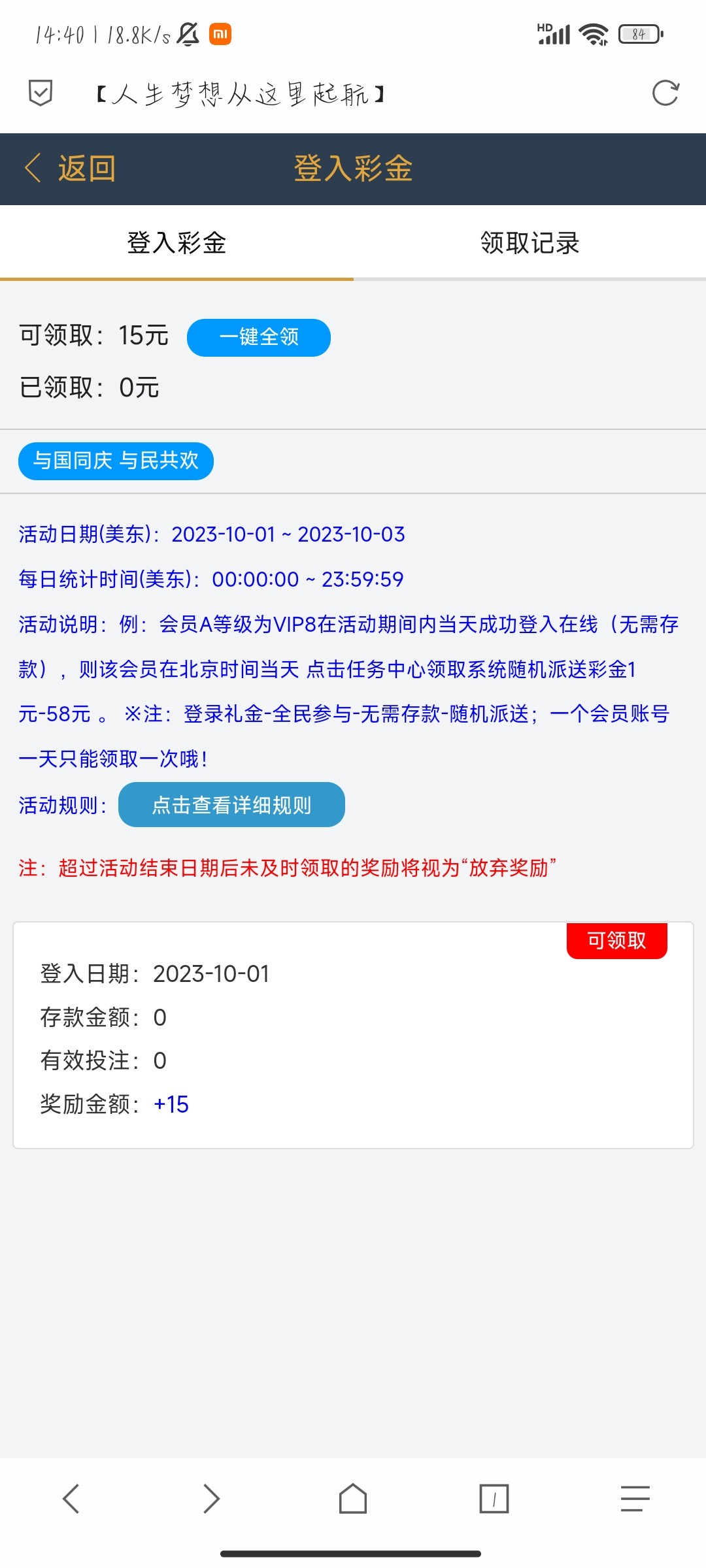 葡京回馈国庆登录彩金