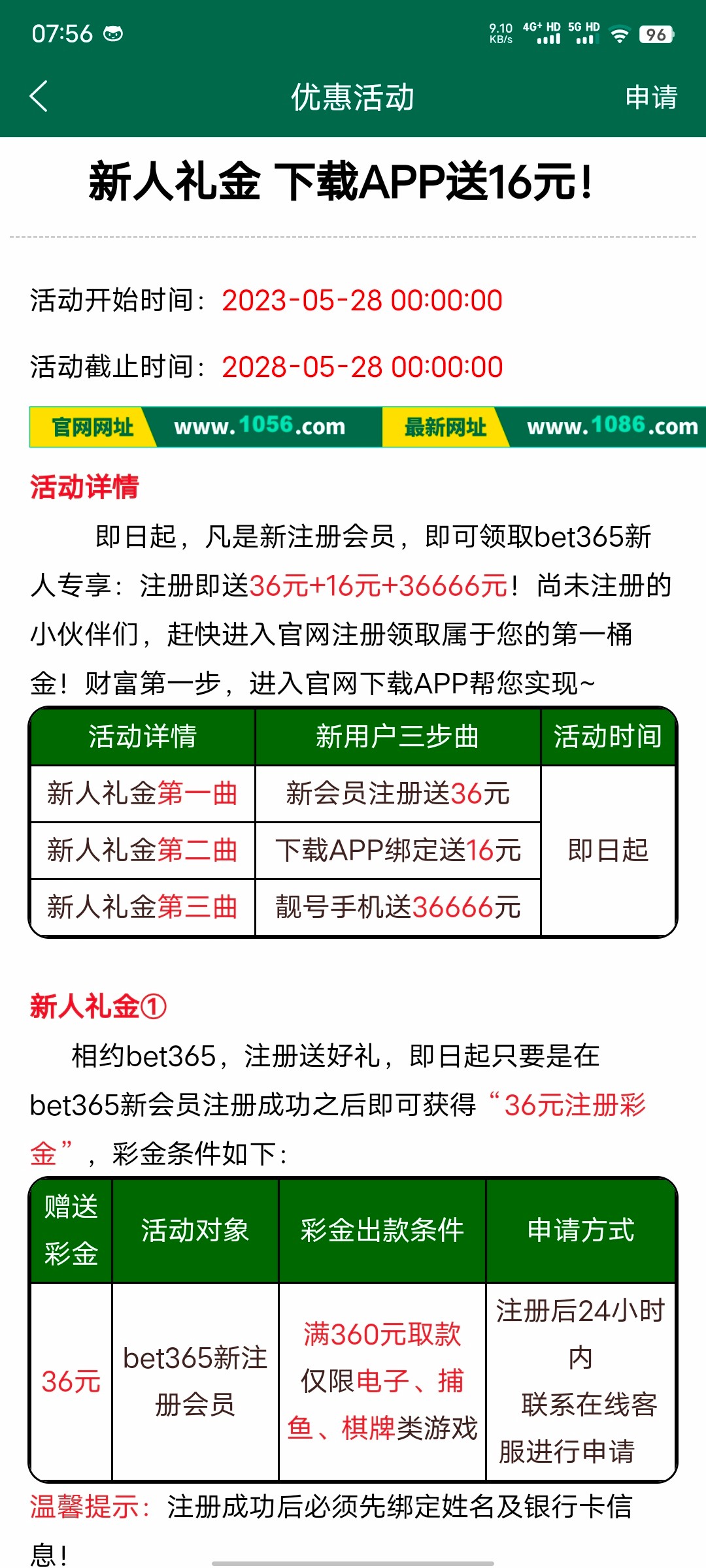 前几天我的一个才用两个月的新手机号收到短信,然后用玩了两年的1056账号去提交,居然也给了36。。
