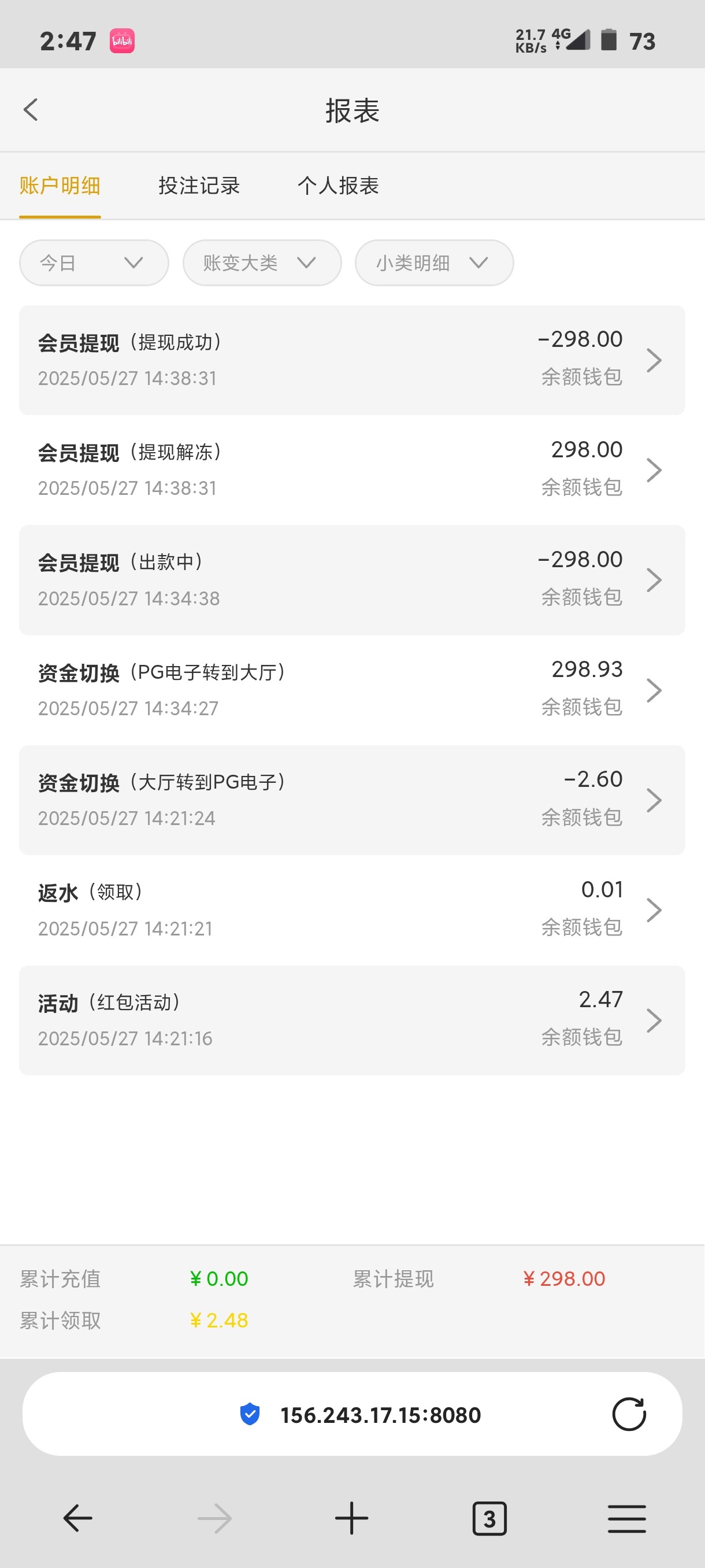 今天挂逼了,手机都停机了,睡醒领了2块红包给我打了298出来,牛逼