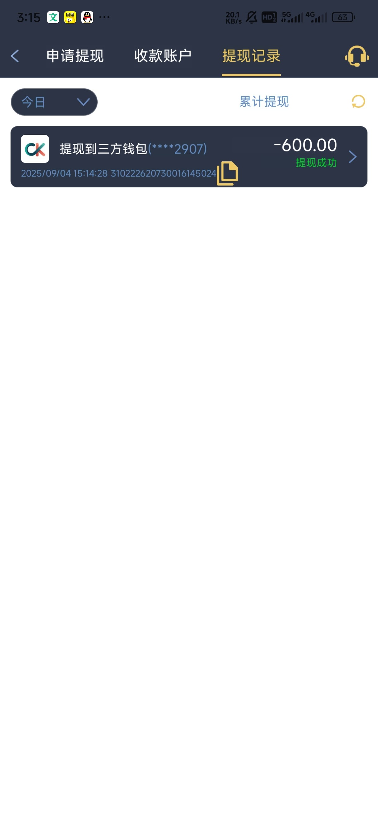 打了两个小时,打着打着就没水了,一看流水满了,刚刚好提现600