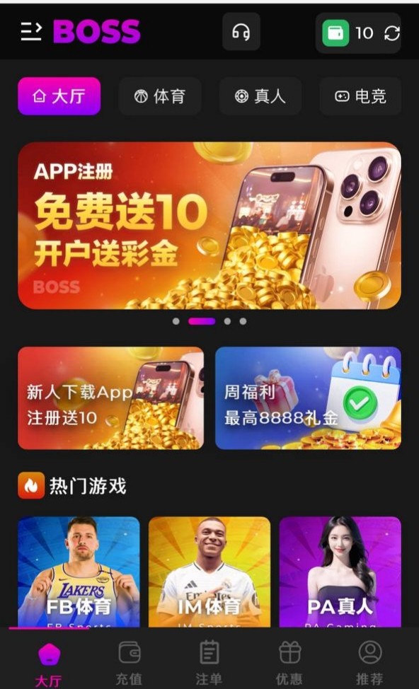 新用户注册送10彩金,每天500名额没有第二天去,具体自测