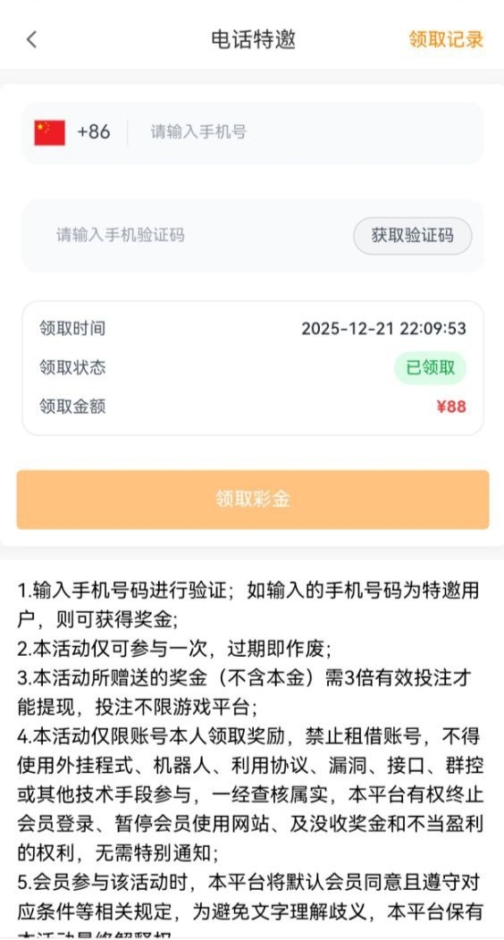 蓝盾8092特邀88彩金