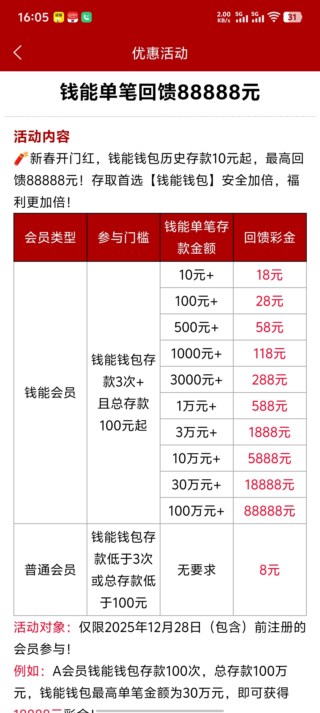 元旦回馈的彩金咋提