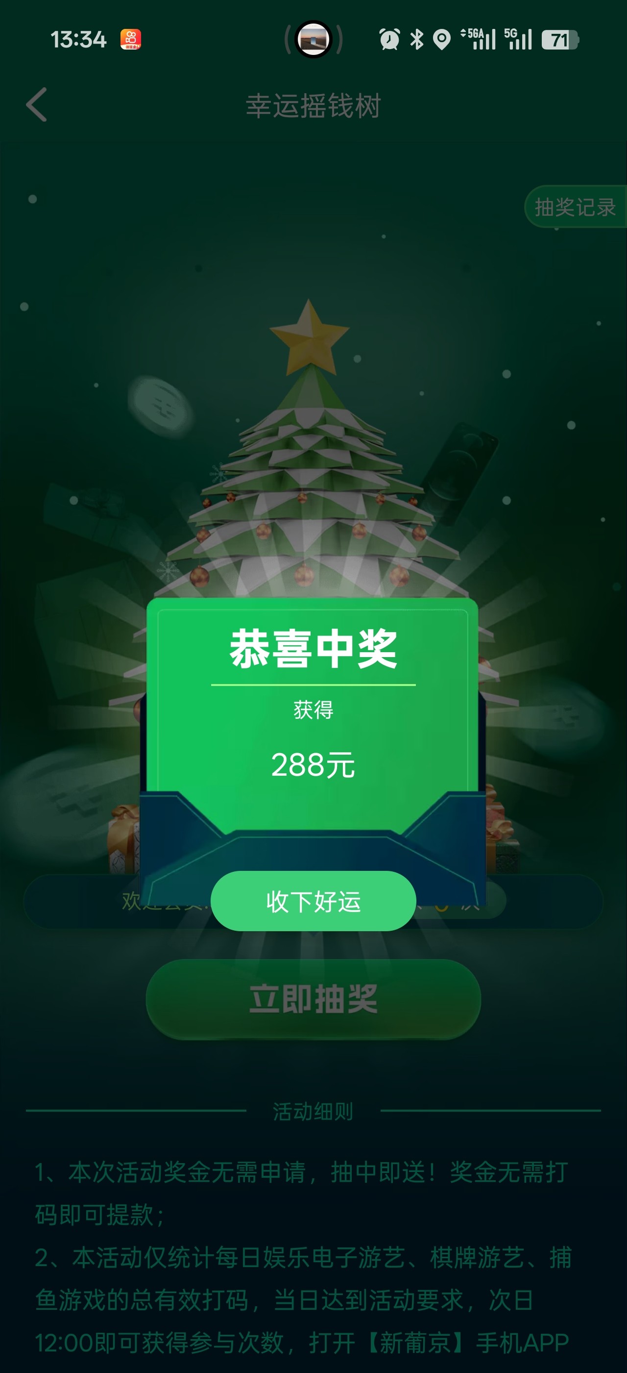 摇钱树中奖了288彩