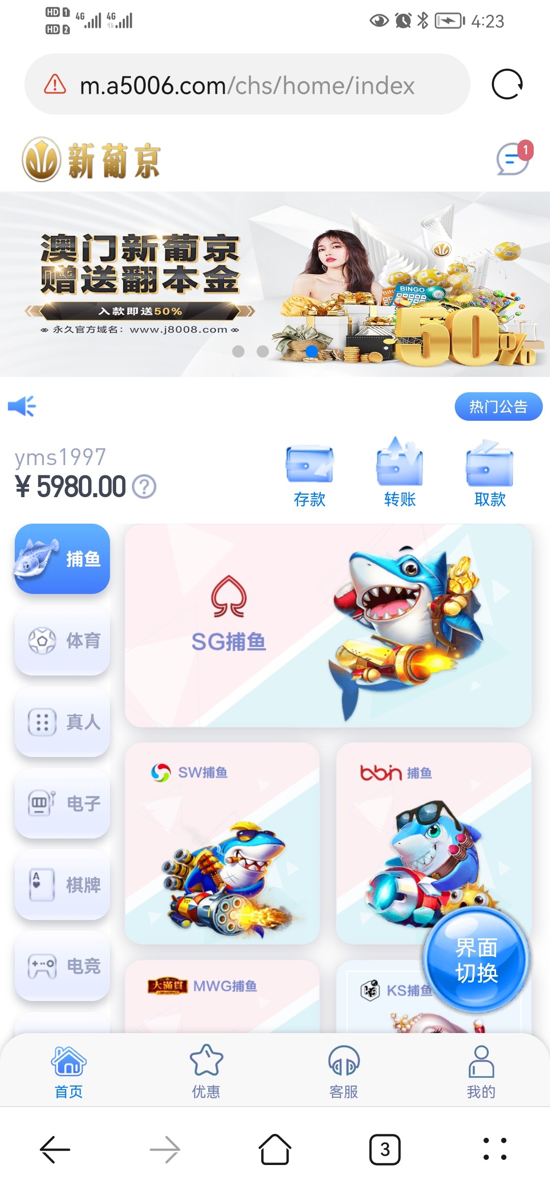 可以上,充1000撸出来了
