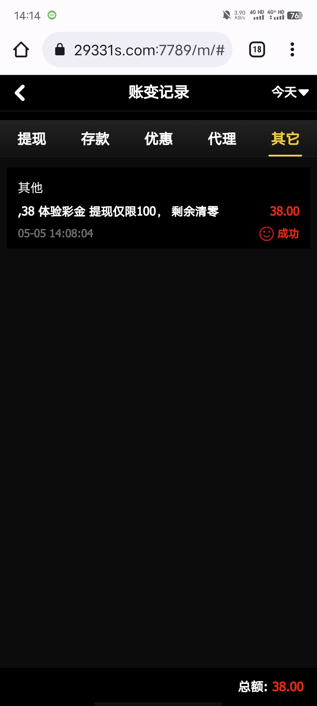 我中午回访,刚刚去玩,提了100。秒到,可以的。