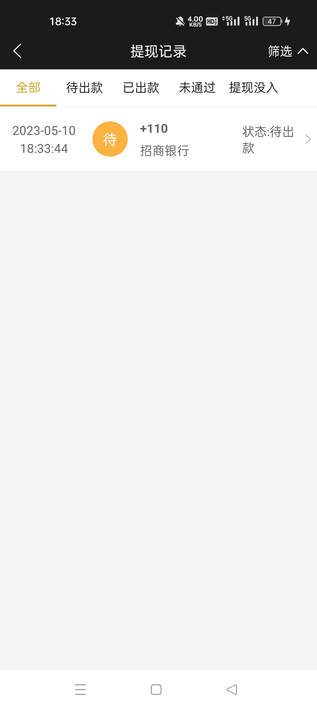 36块钱彩金打到指定提现额360,正在提款,期待到账