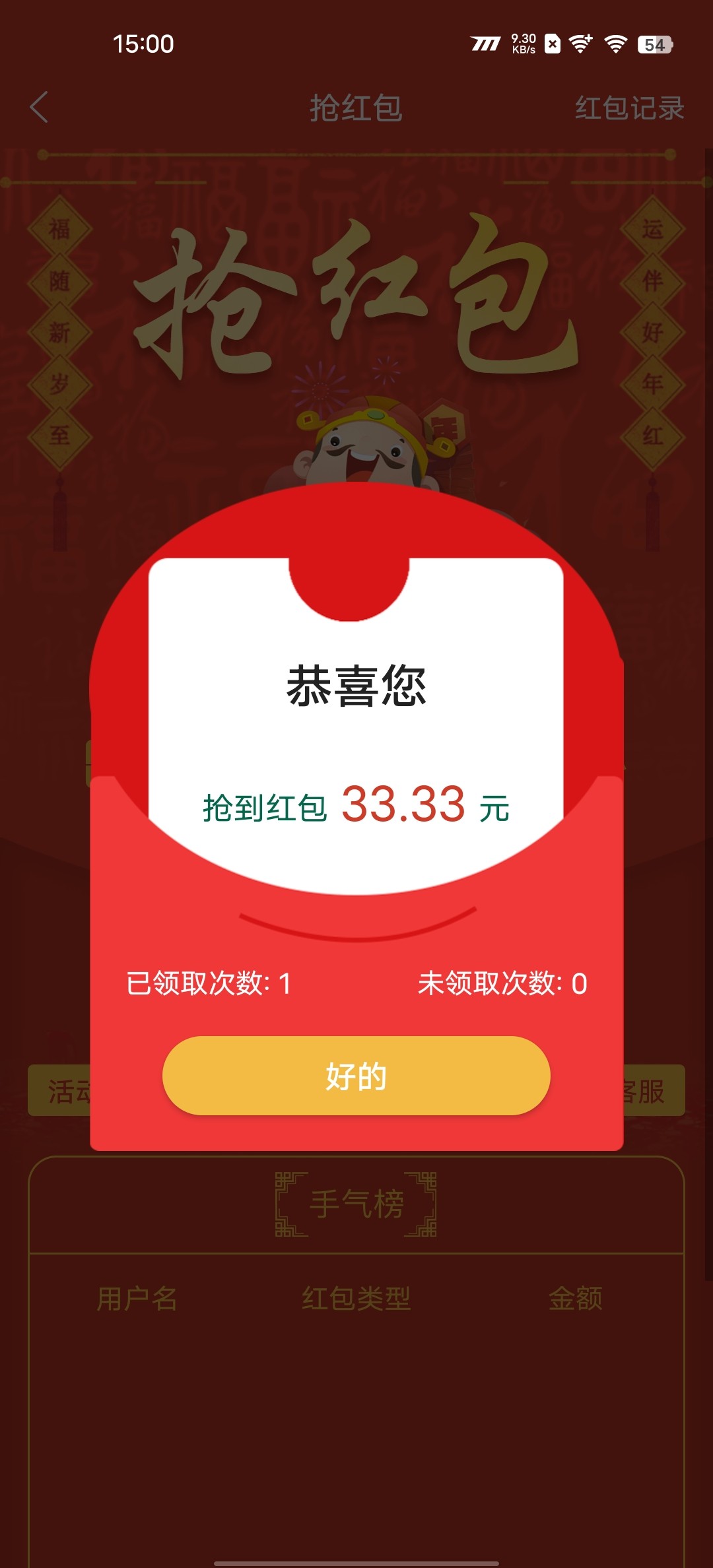 你是vip几啊?前一天打码多少能抢33红包。这玩意跟等级和打码挂钩的。