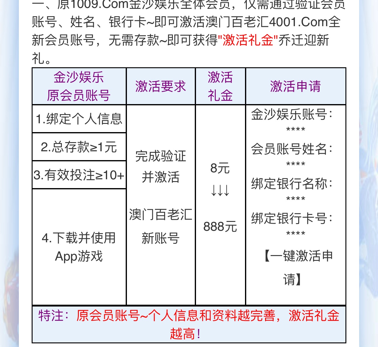 4001.com转移账号彩之前 1009 有账号的去申请