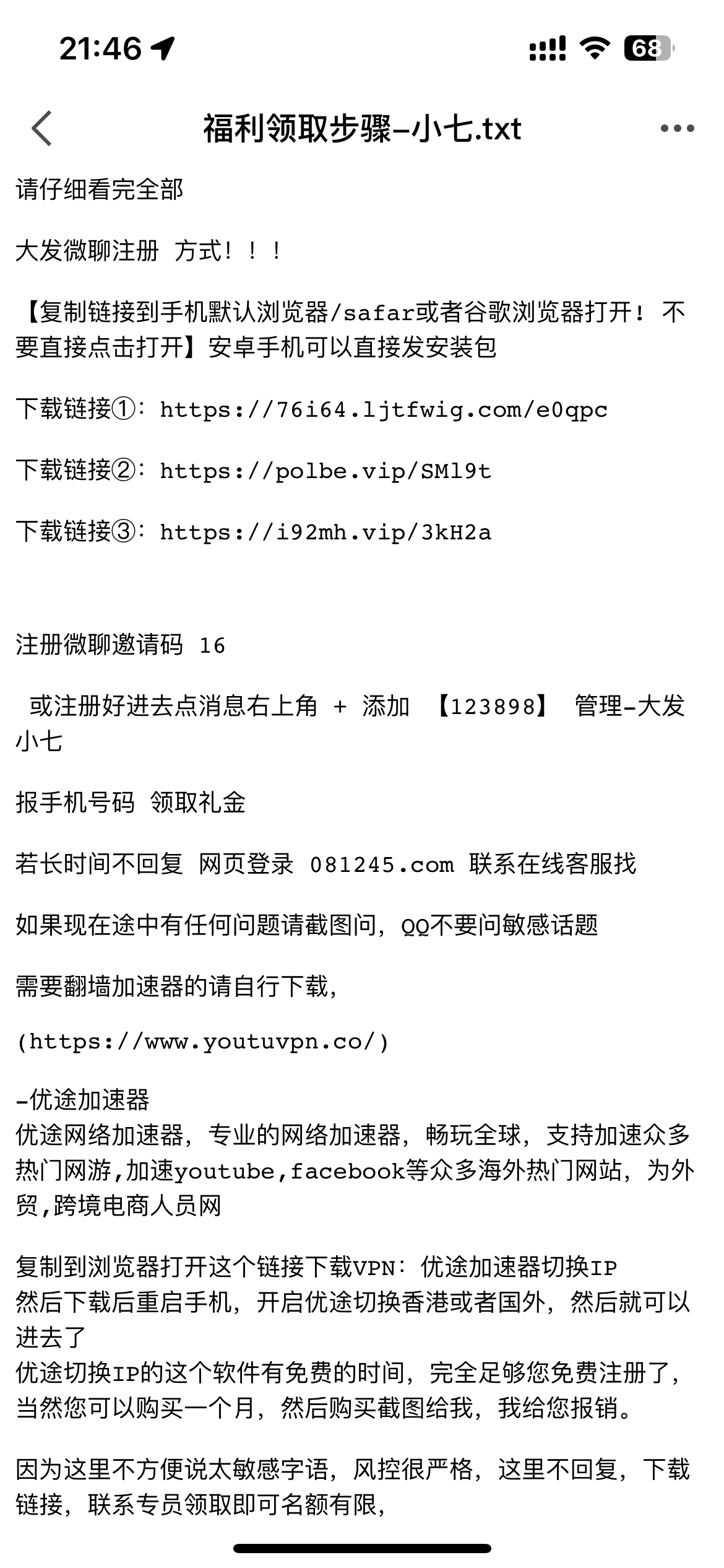 【复制链接到手机默认浏览器/safar或者谷歌浏览器打开! 不要直接点击打开】安卓手机可以直接发安装包