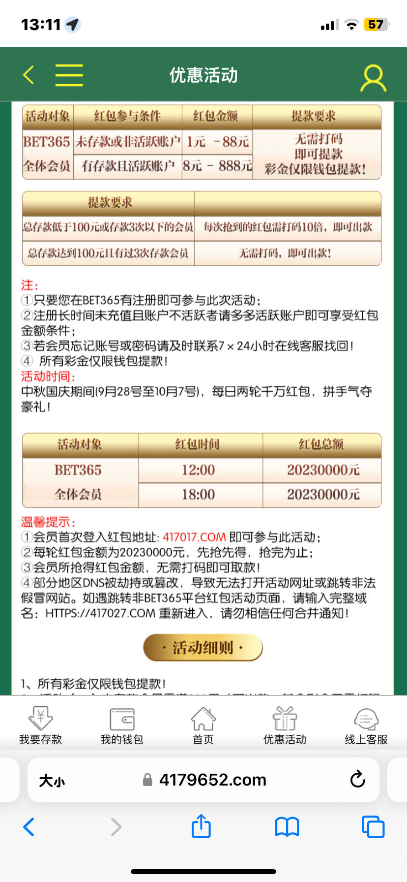 417回馈可以去看看,9.28~10.7抢红包