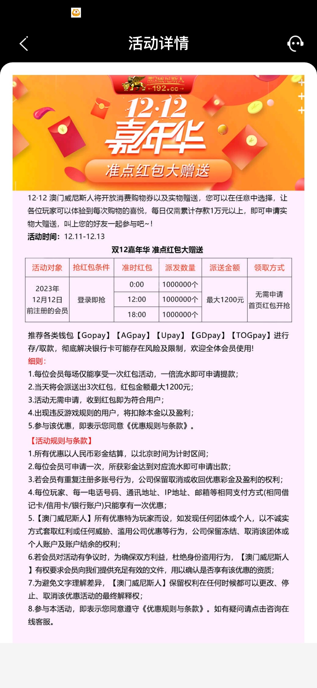 威尼斯双12有红包雨