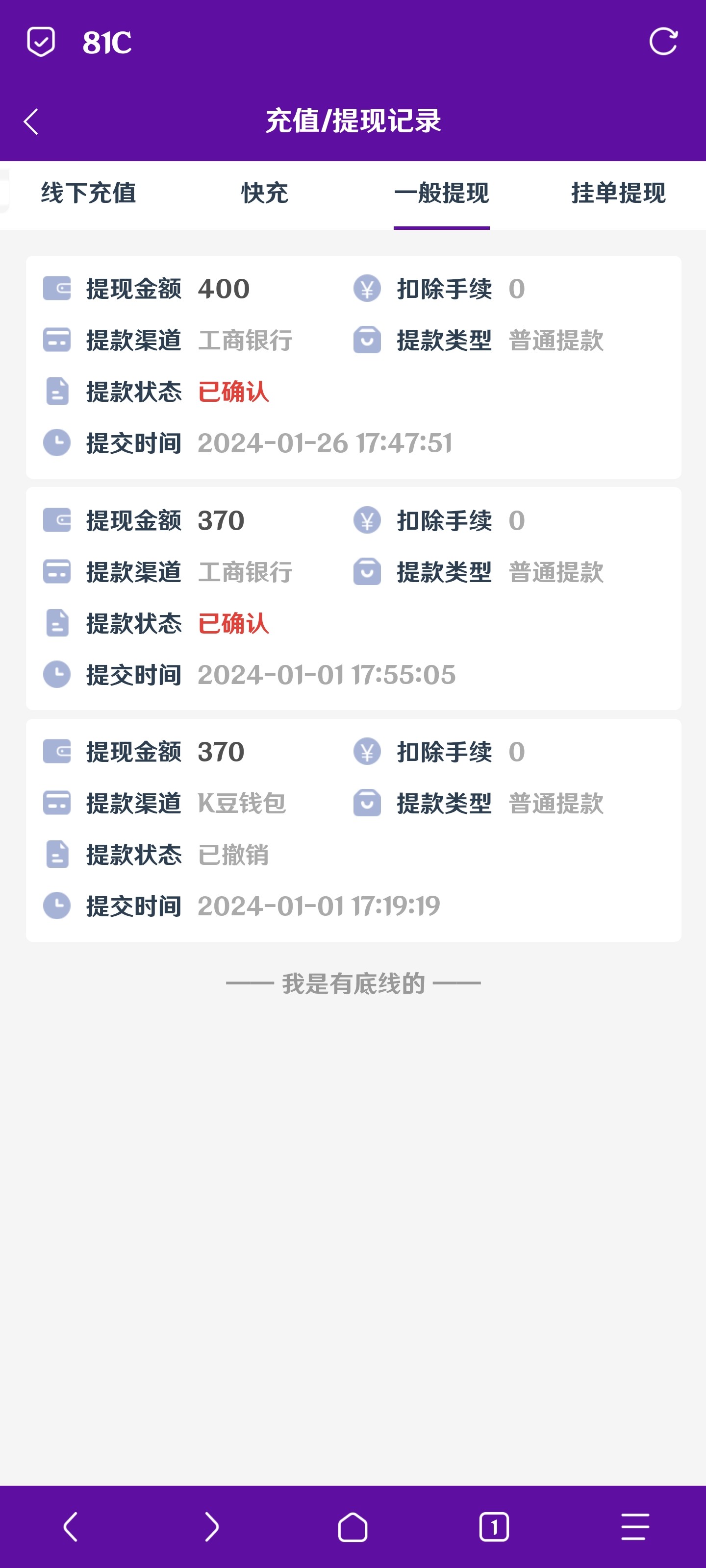 我提的钱包直接退回了