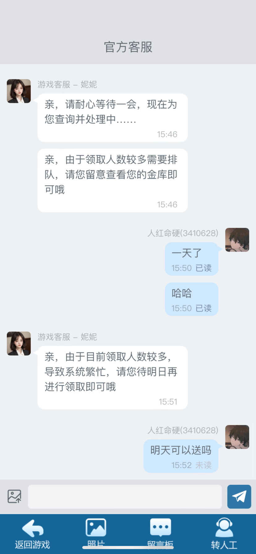 客服是不是被日了,不回信息