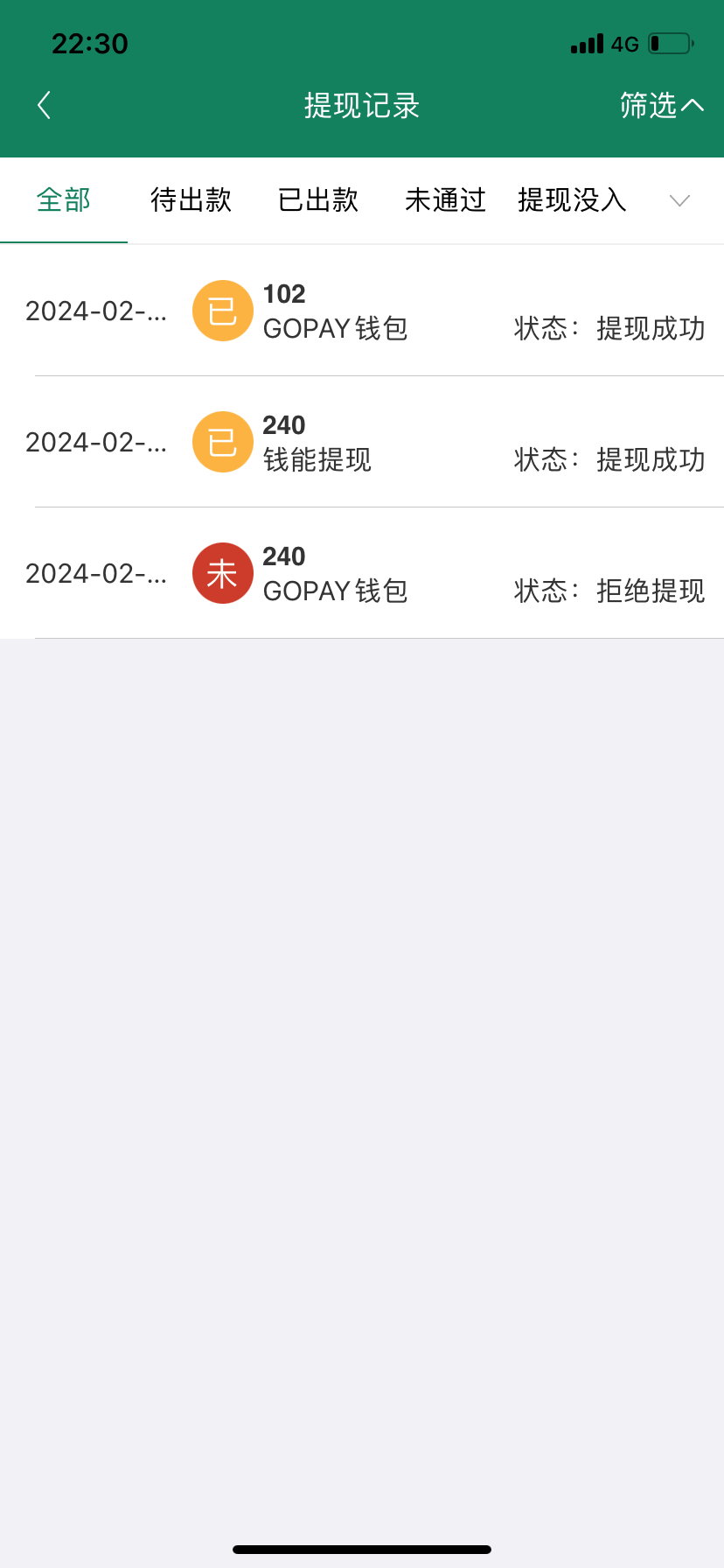 出款情况: 半黑