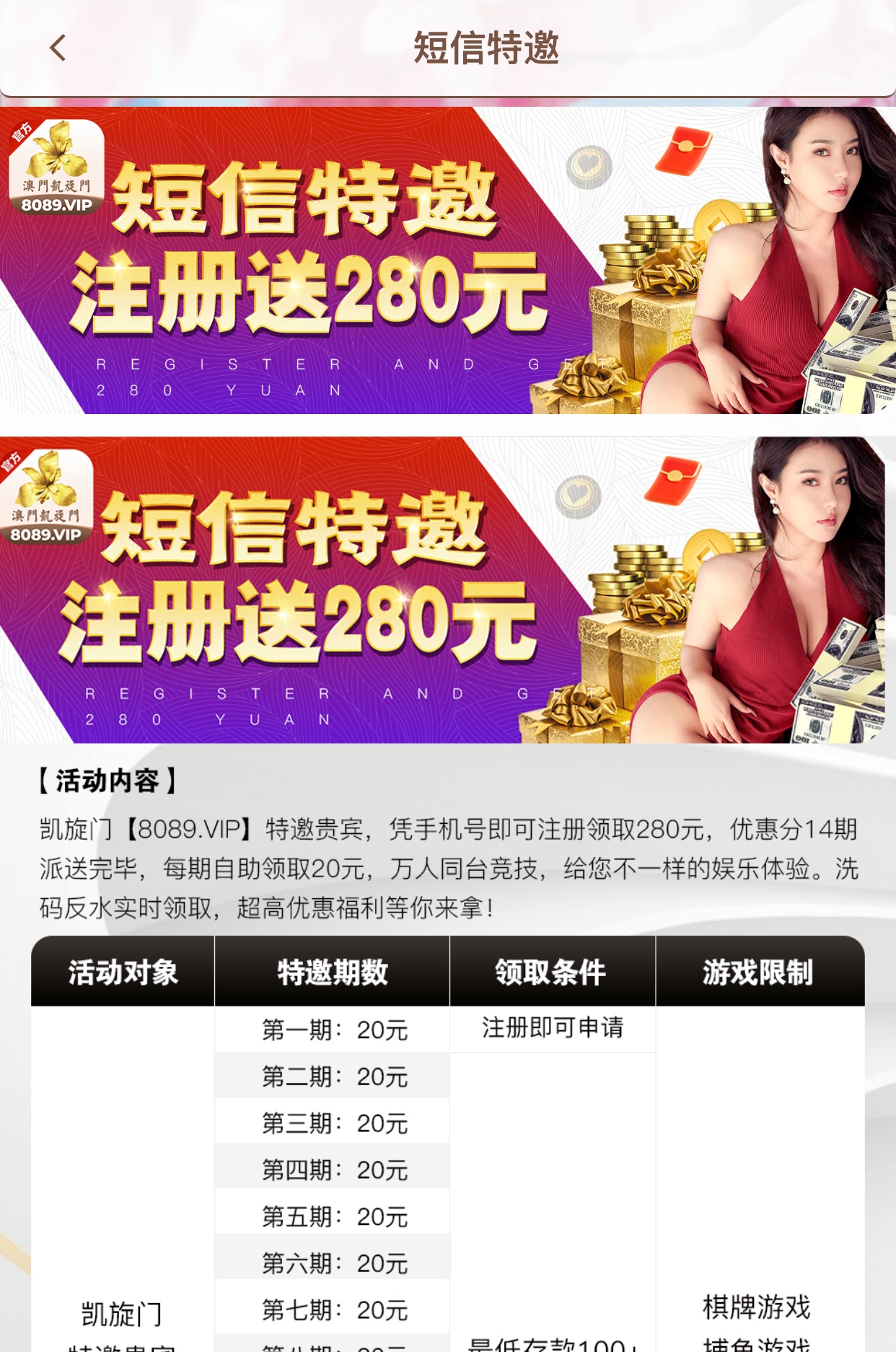 这种只能领一期,我天天收到短信,领第二期就是活跃度不够,让充值