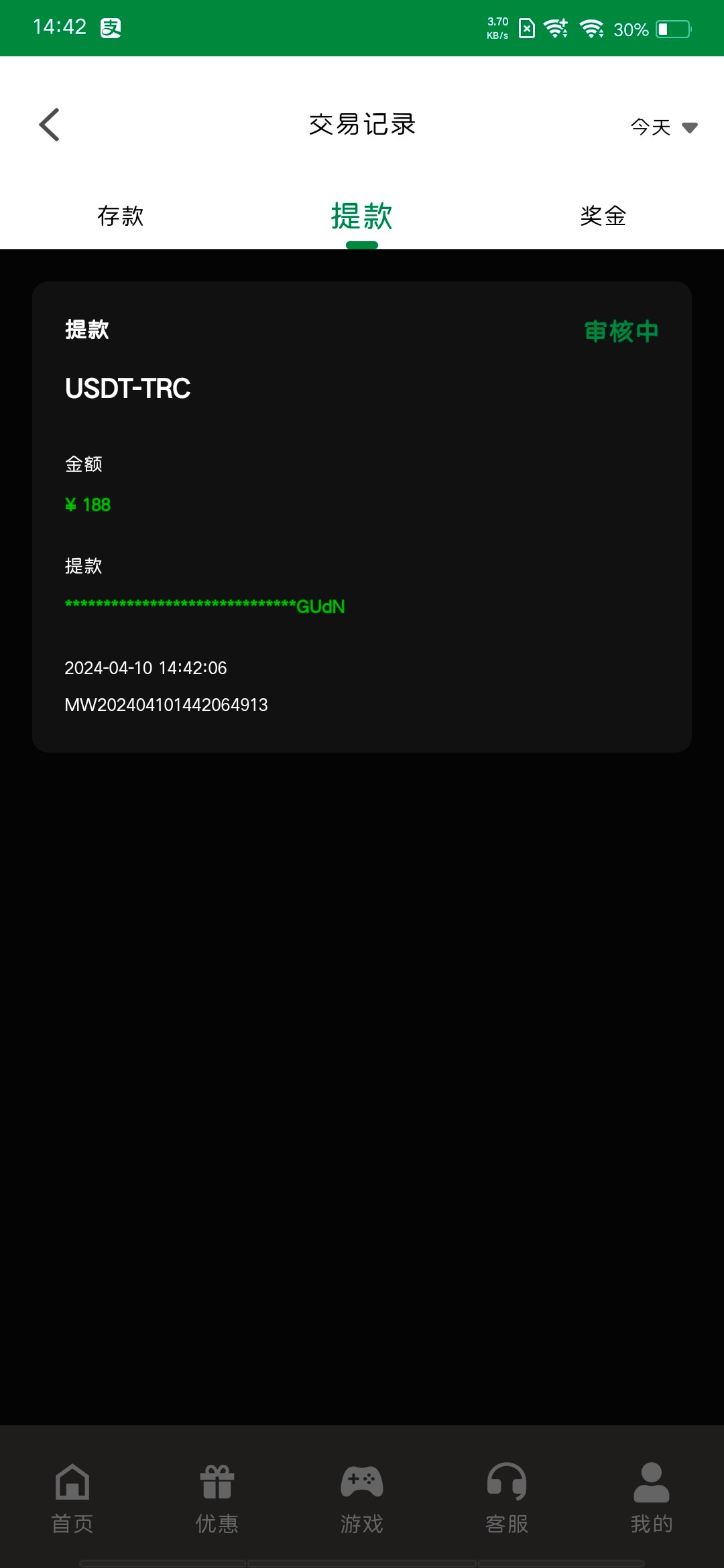 我的188 一个小时才到