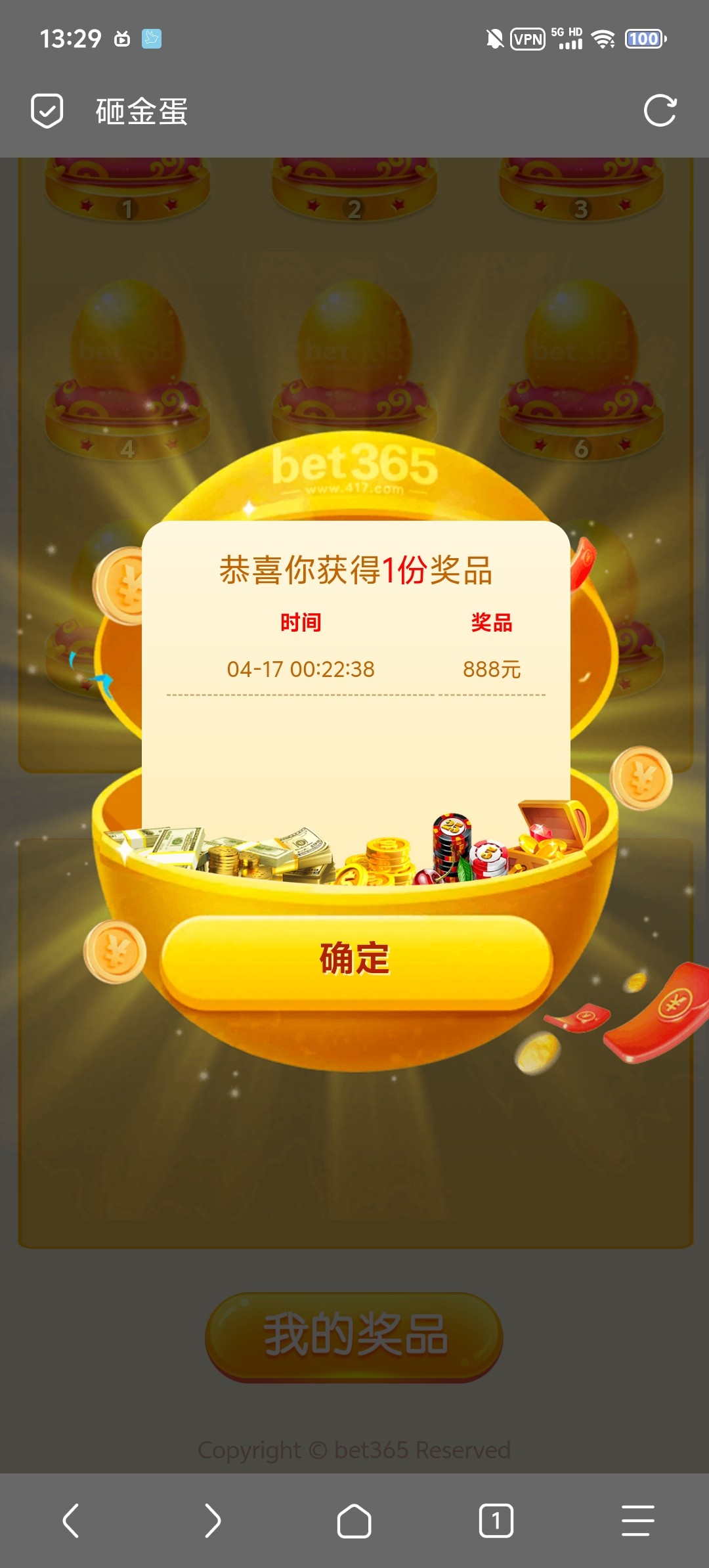 一个半小时了彩金不到