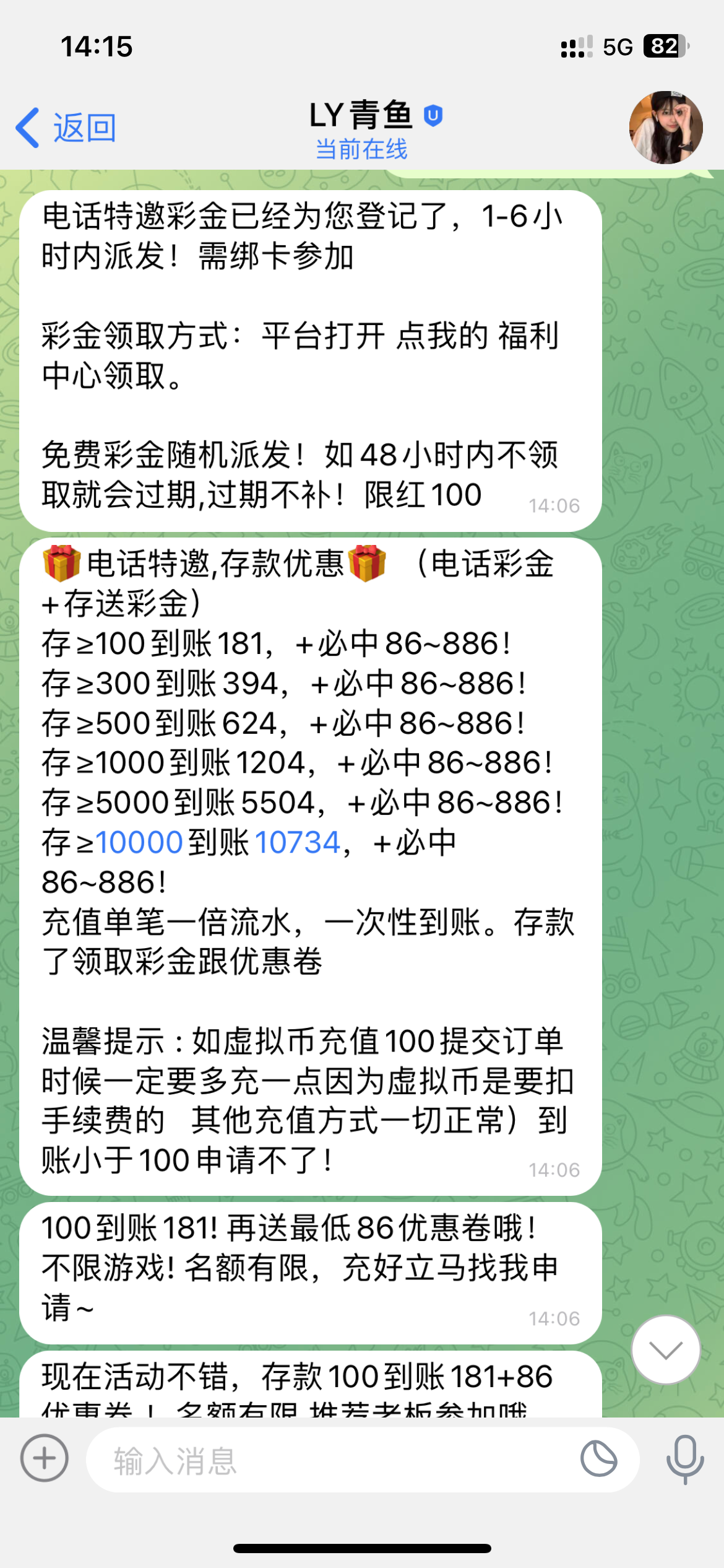 先找客服说电话彩金,客服然后让你下App联系专员,有号的老哥可以去试试,ly406.com