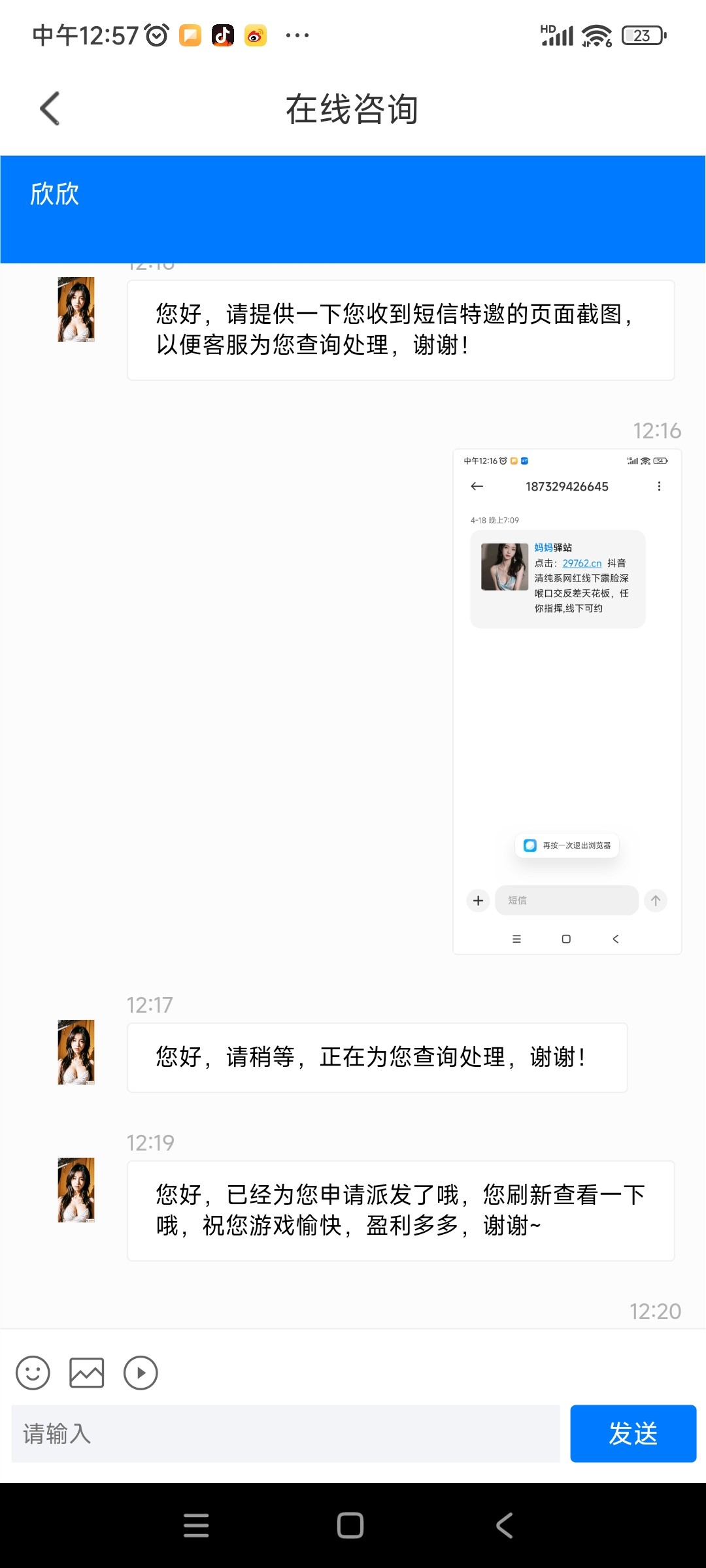 有短信就有,碰瓷不明
