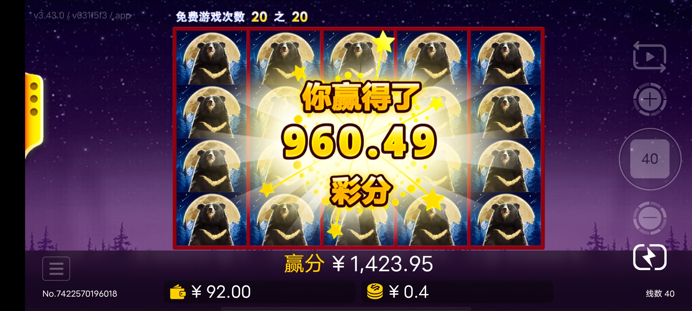 不建议上 根本就是控分 六次免费 爆到230的时候一直空转后面的免费压根不给钱 提了本金 千万别上要相信我 这哥们发的首存这是我第一次出的本金 前面的全部杀完