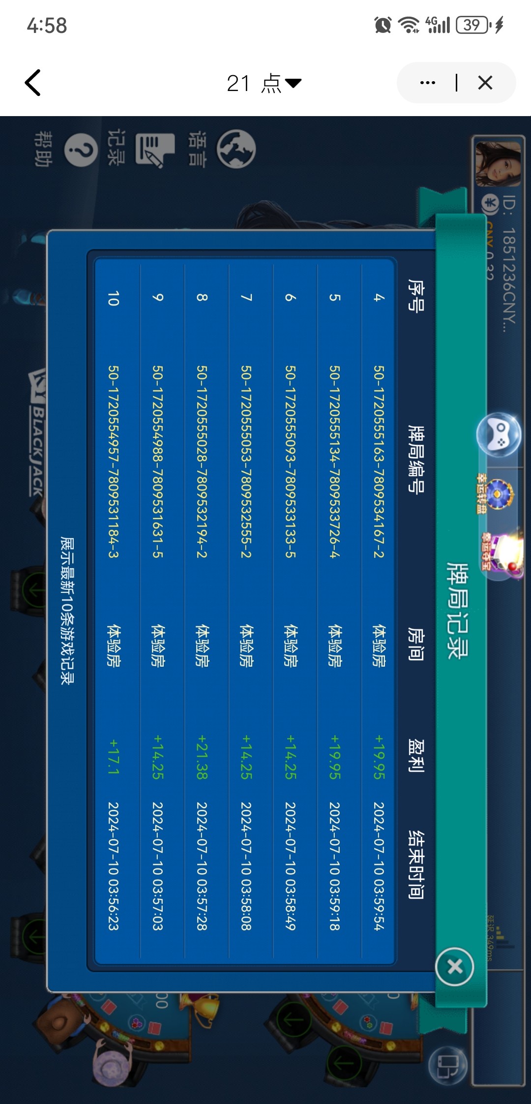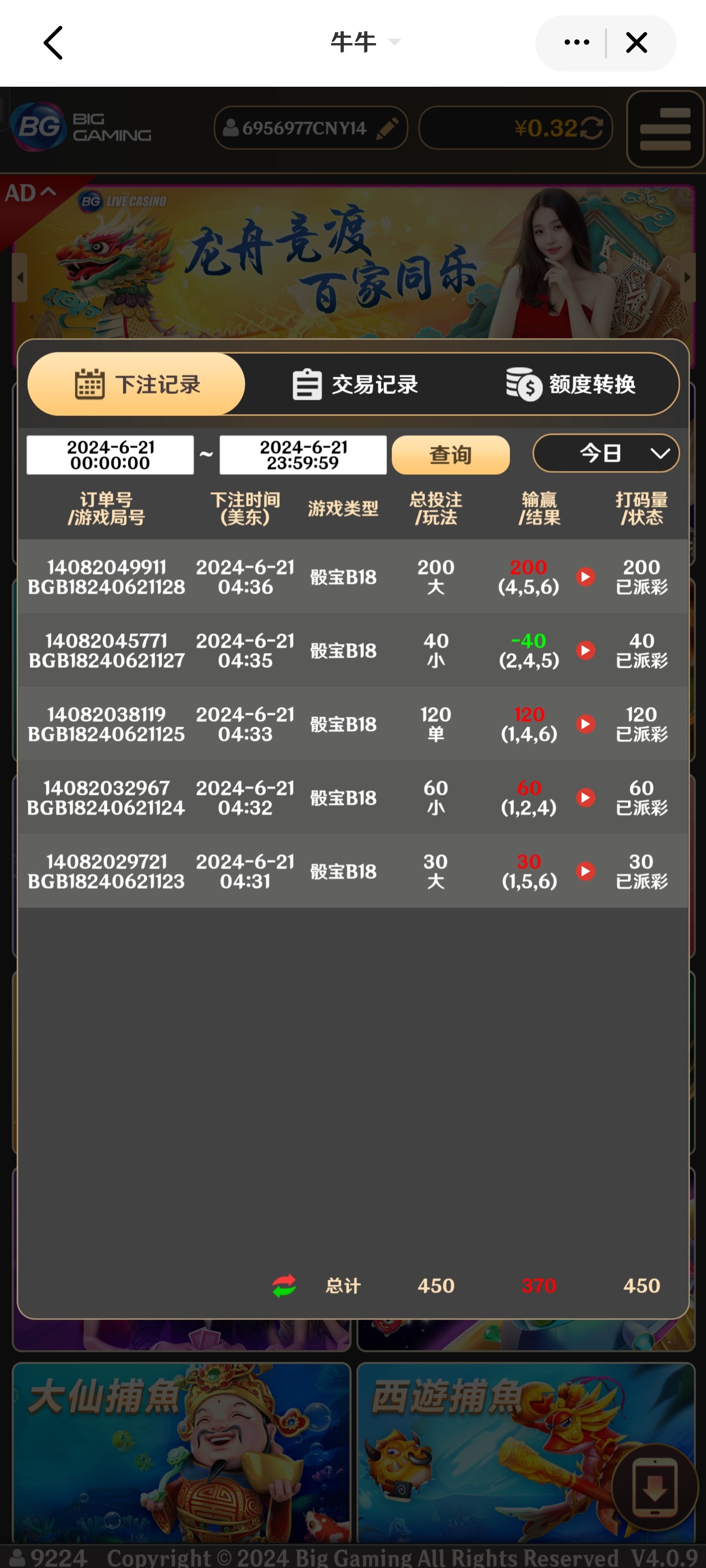 本来开元21点打到400没提,打百家乐输到200,买了个糖果的免费,爆了400多,打女皇进夺宝又爆了120,提600