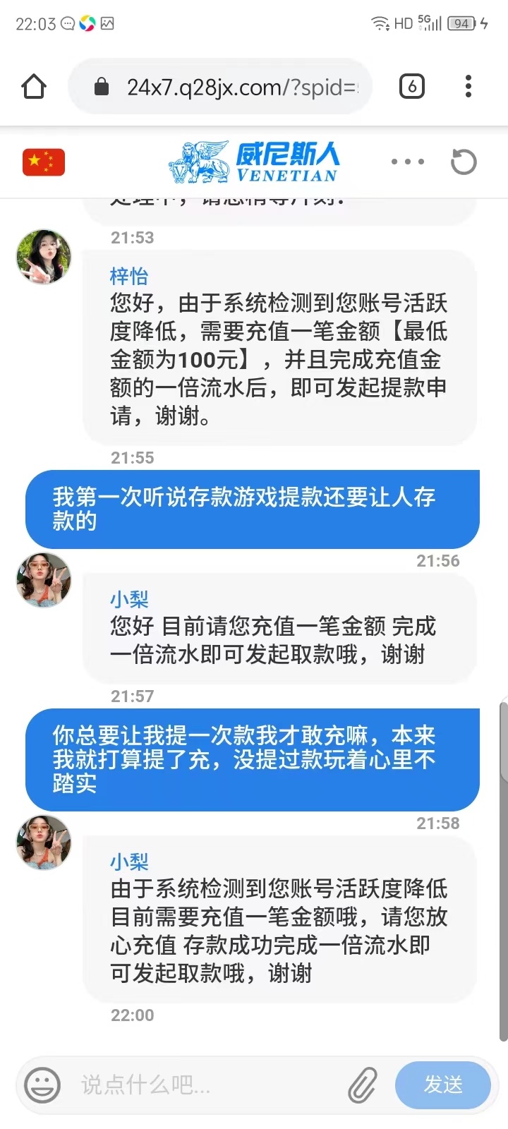 这个司马台,这个月充了5000,也是接到电话有签到彩金,tmd提个200说我活跃度不足,煞笔