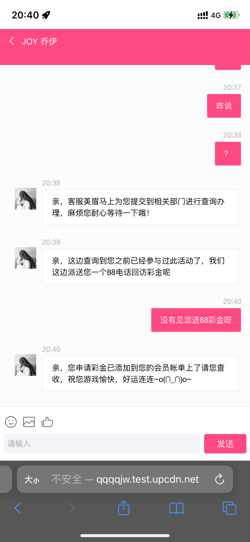 你那是去找她申请什么活动了 给你送的那是回访彩金 这怎么去碰