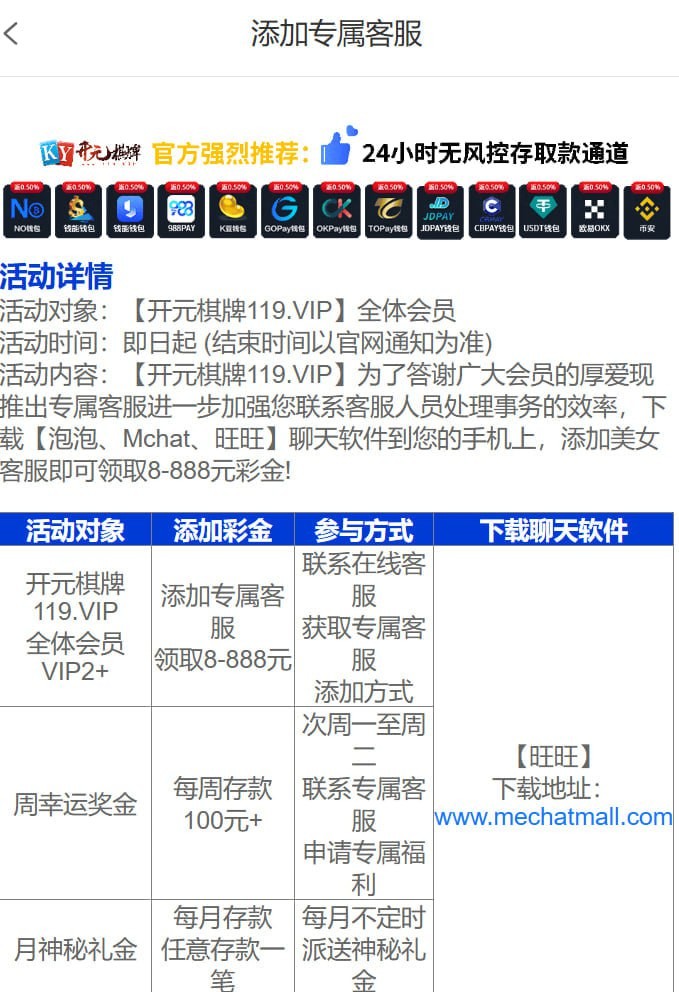 开元119主页那个达到VIP2以上的用户去加旺旺客服领取VIP等级专属彩金,具体看下图吧l