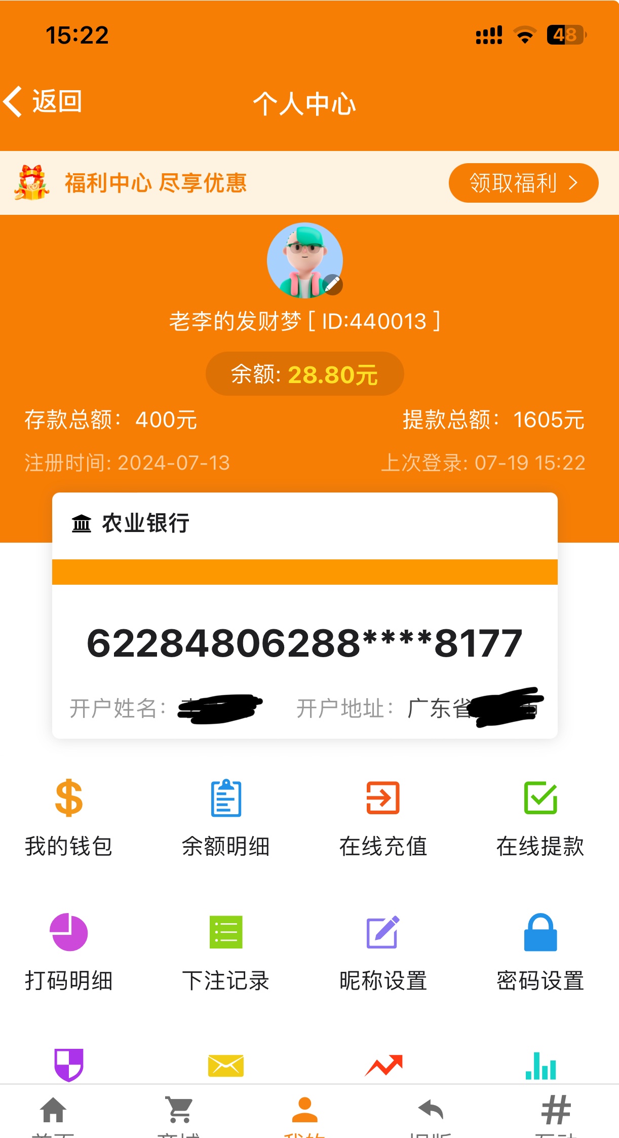 76彩回馈了28元彩金
