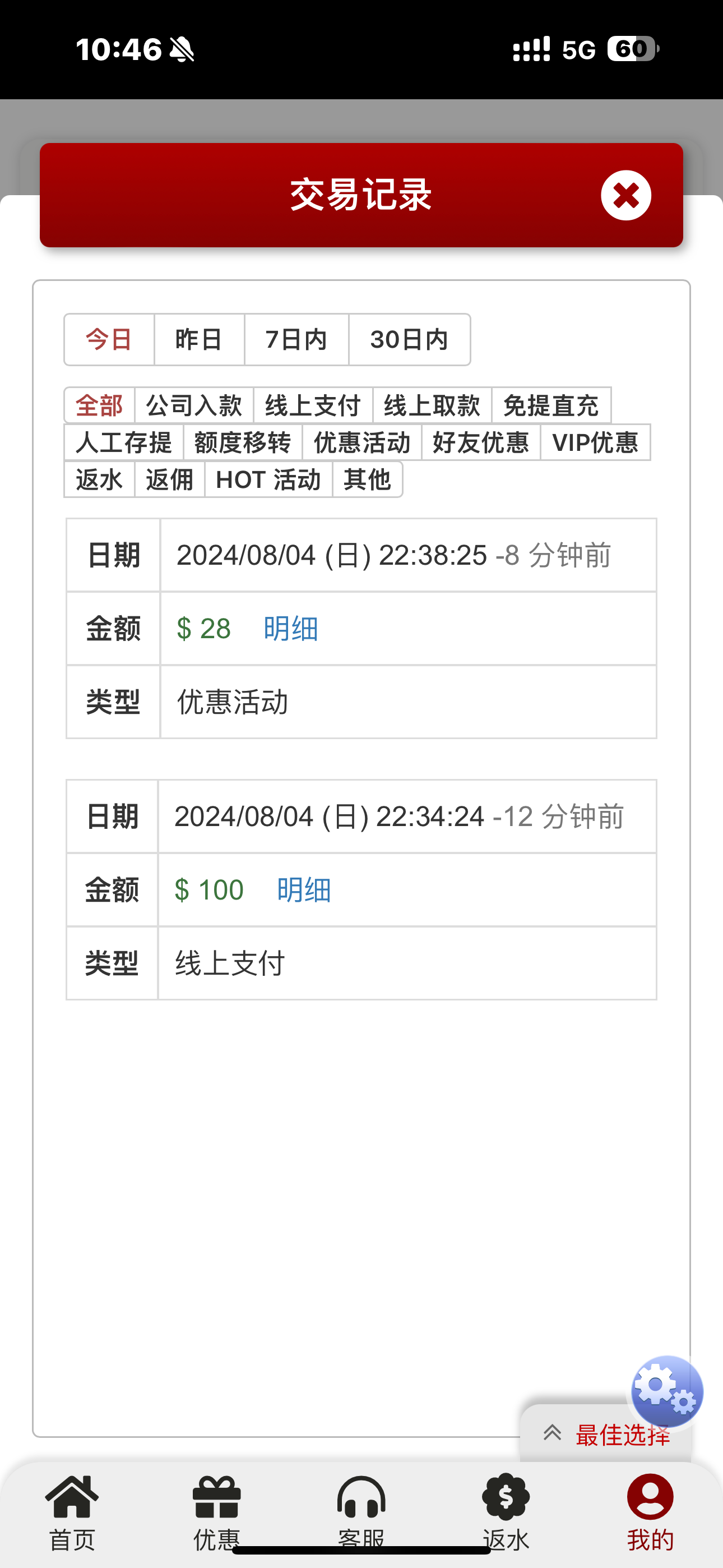 88+88拉6块麻1提1900,复存1千提1900,再复存一千提2900,三寸一千提2200,后面盈利5k送回去了,台子还行