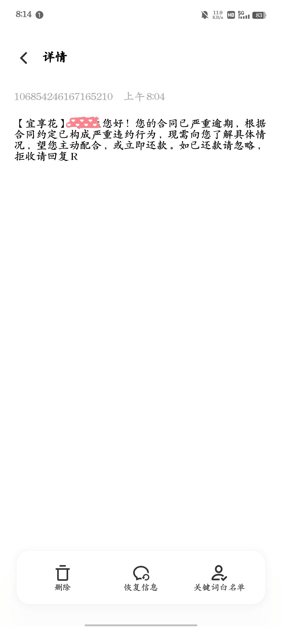 100块钱值得弄法庭吗?狗催的短信假的。
