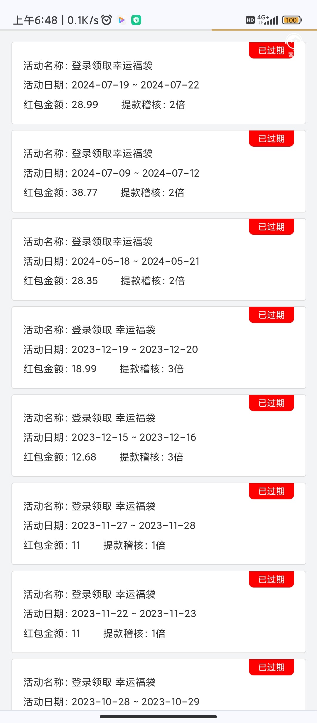 全是过期的彩金