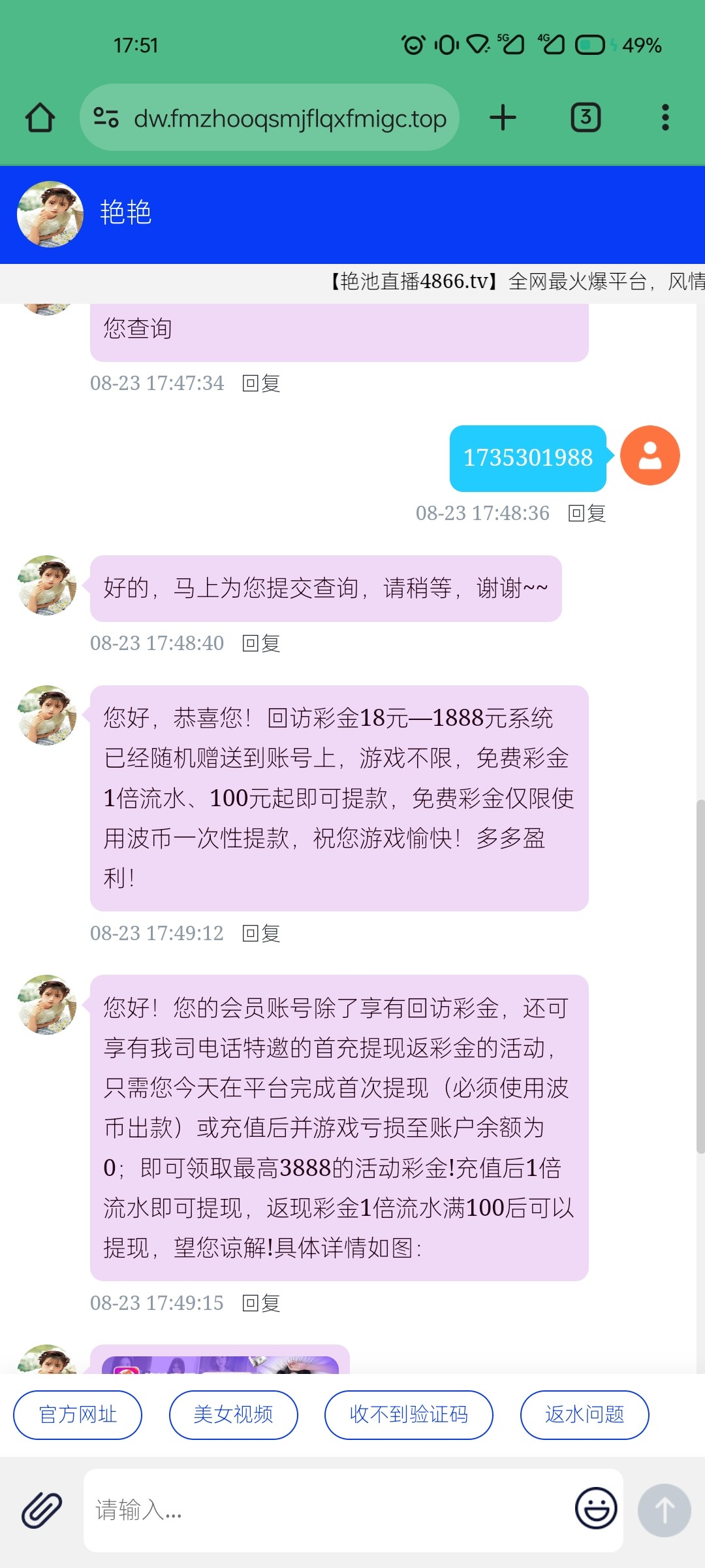 艳池直播回访彩金18