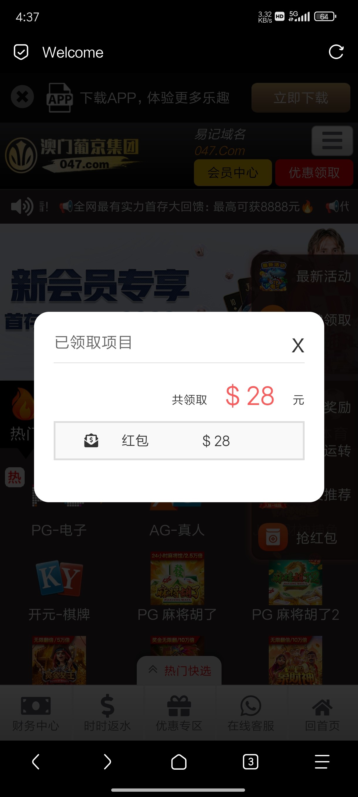 047.com没有充过,有号去看看吧,之前领过7天18