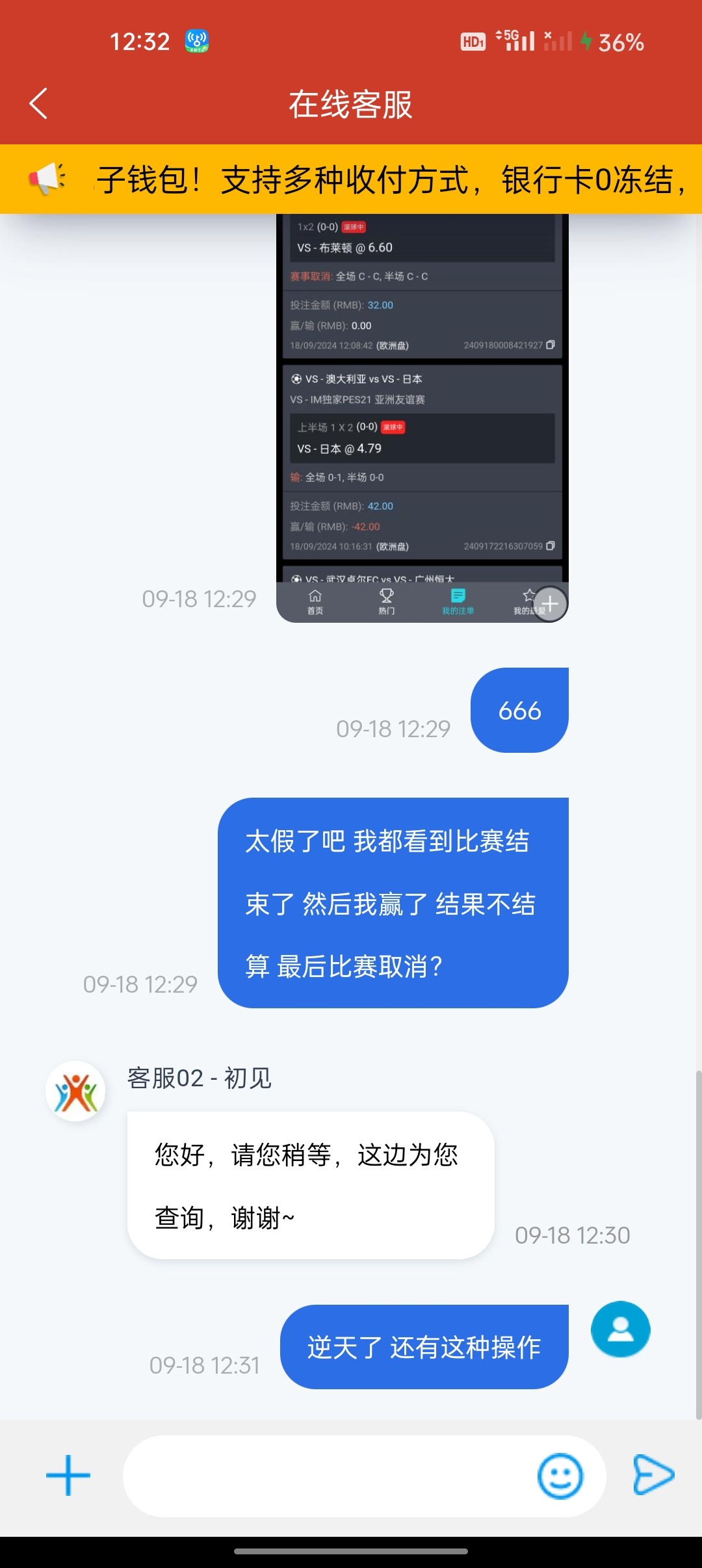 玩IM 体育买了个虚拟比赛 我全程看完 然后我赢了等着结算 然后好几分钟还不结算我就找客服 然后我在看直接显示比赛取消 输的时候就正常结算 赢了就比赛取消真的 6