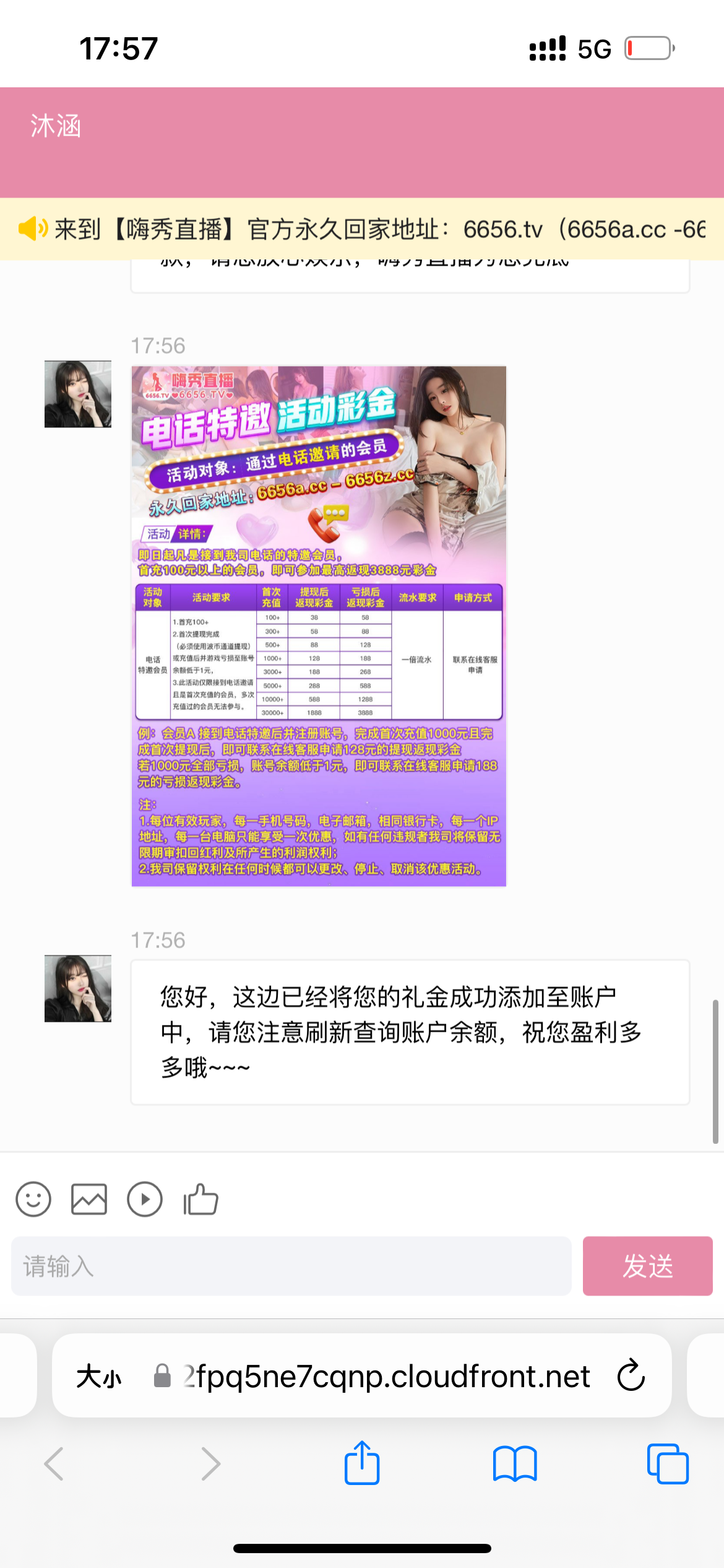 网址6656.tv,发手机号给客服说领特邀彩金,有没有自测,我领了8