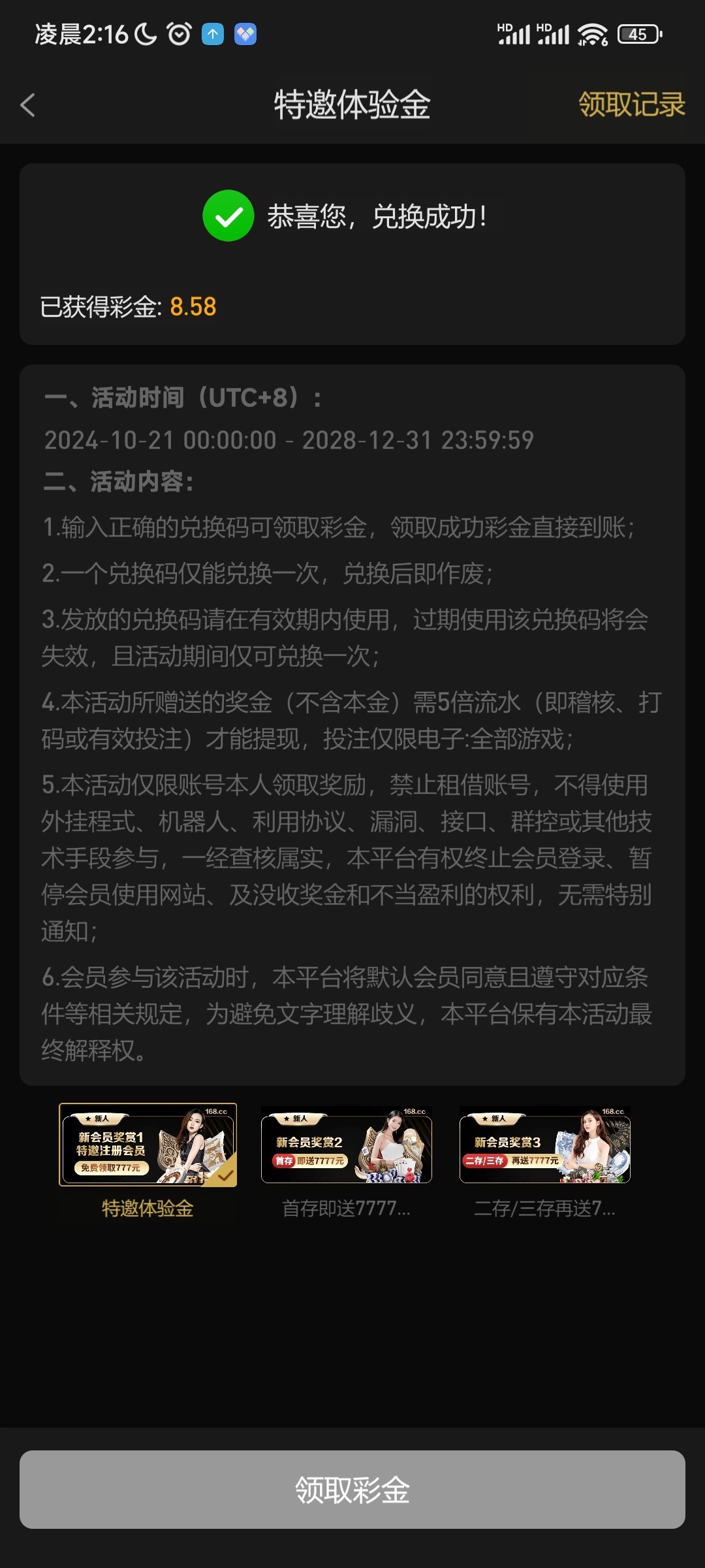 我屌,我还以为真168彩金呢,刚接到电话