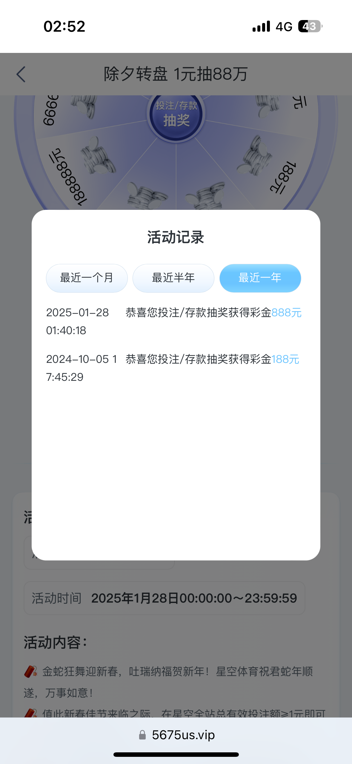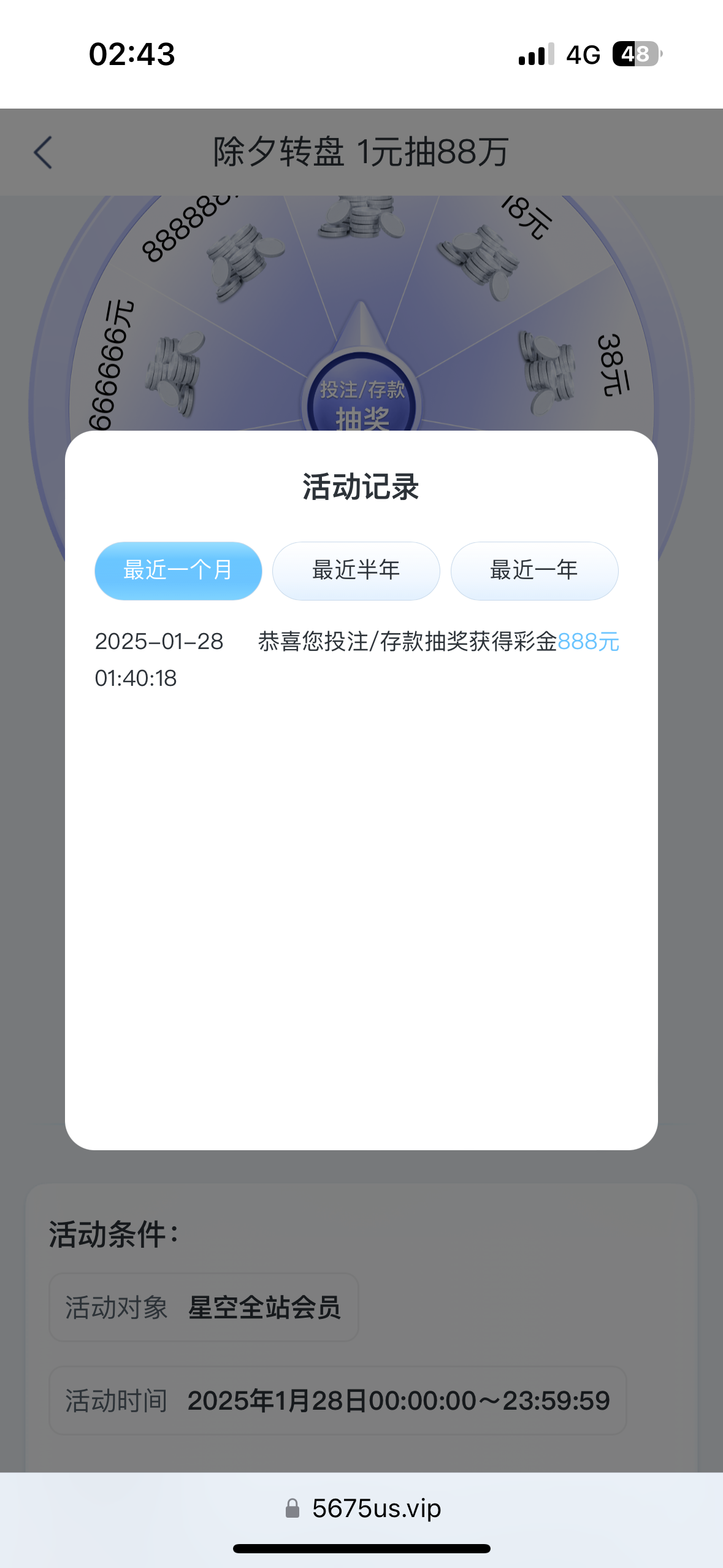 星空抽到了888彩金