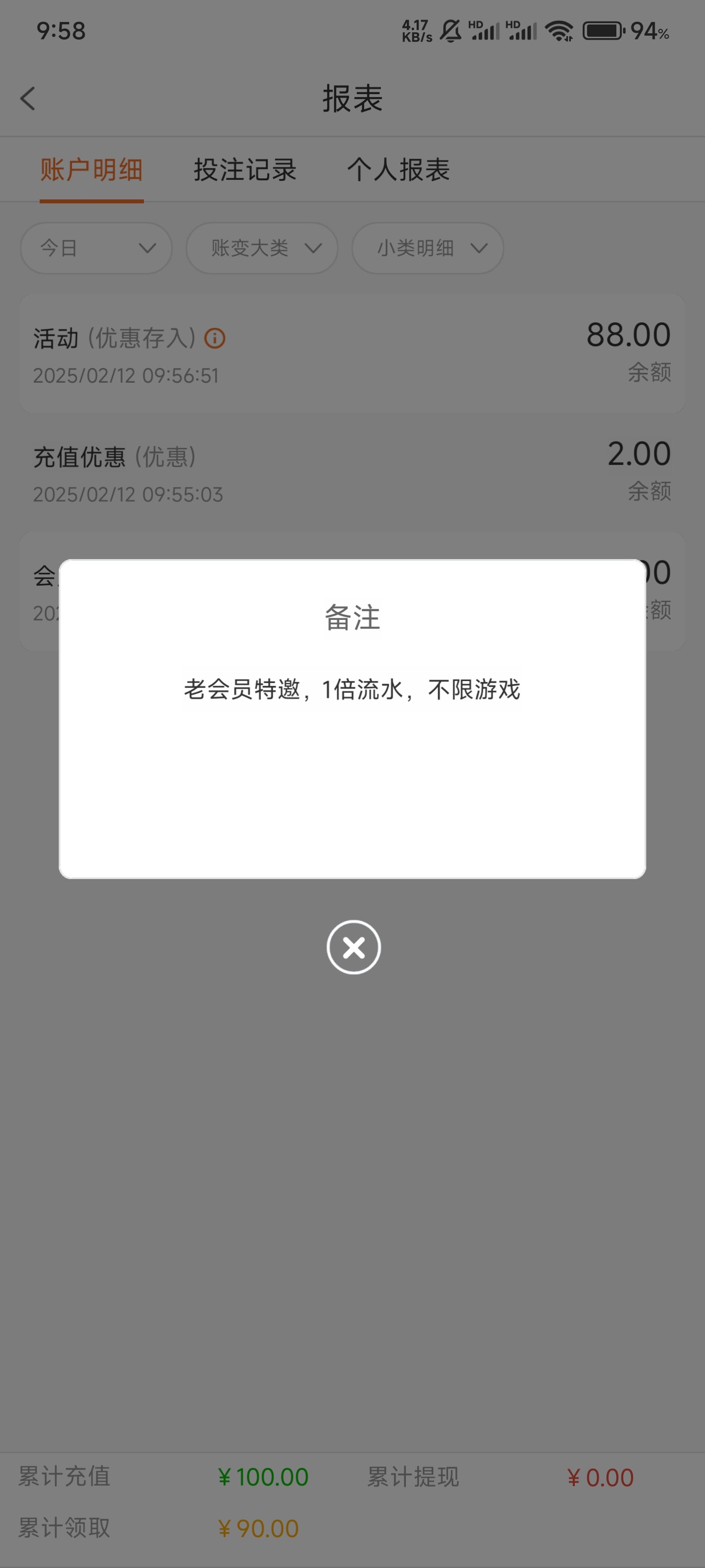 彩金10杯水。100出500