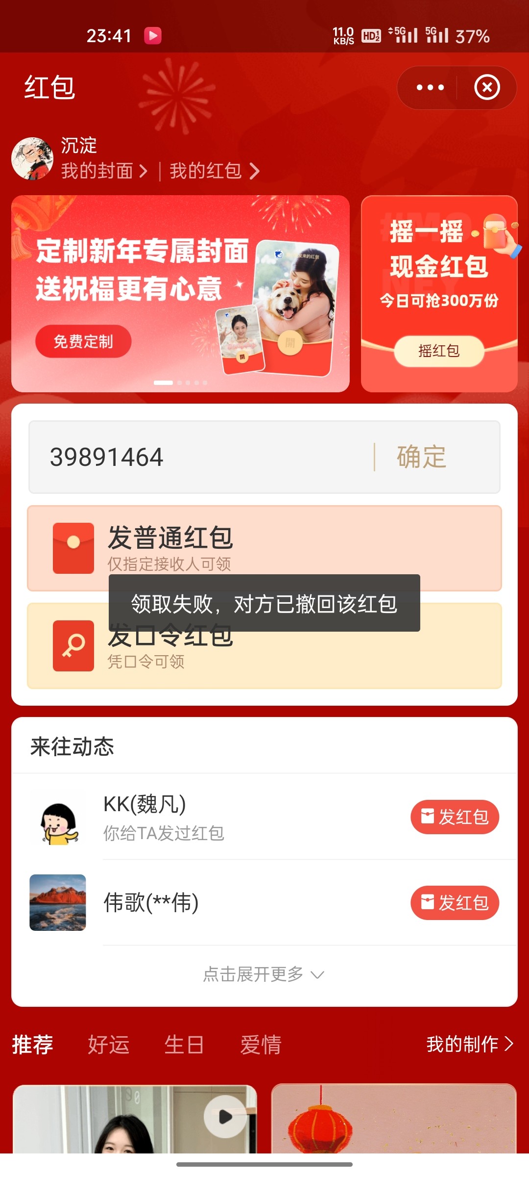 红包人数和金额颠倒了就撤回了口令5个人09222571
