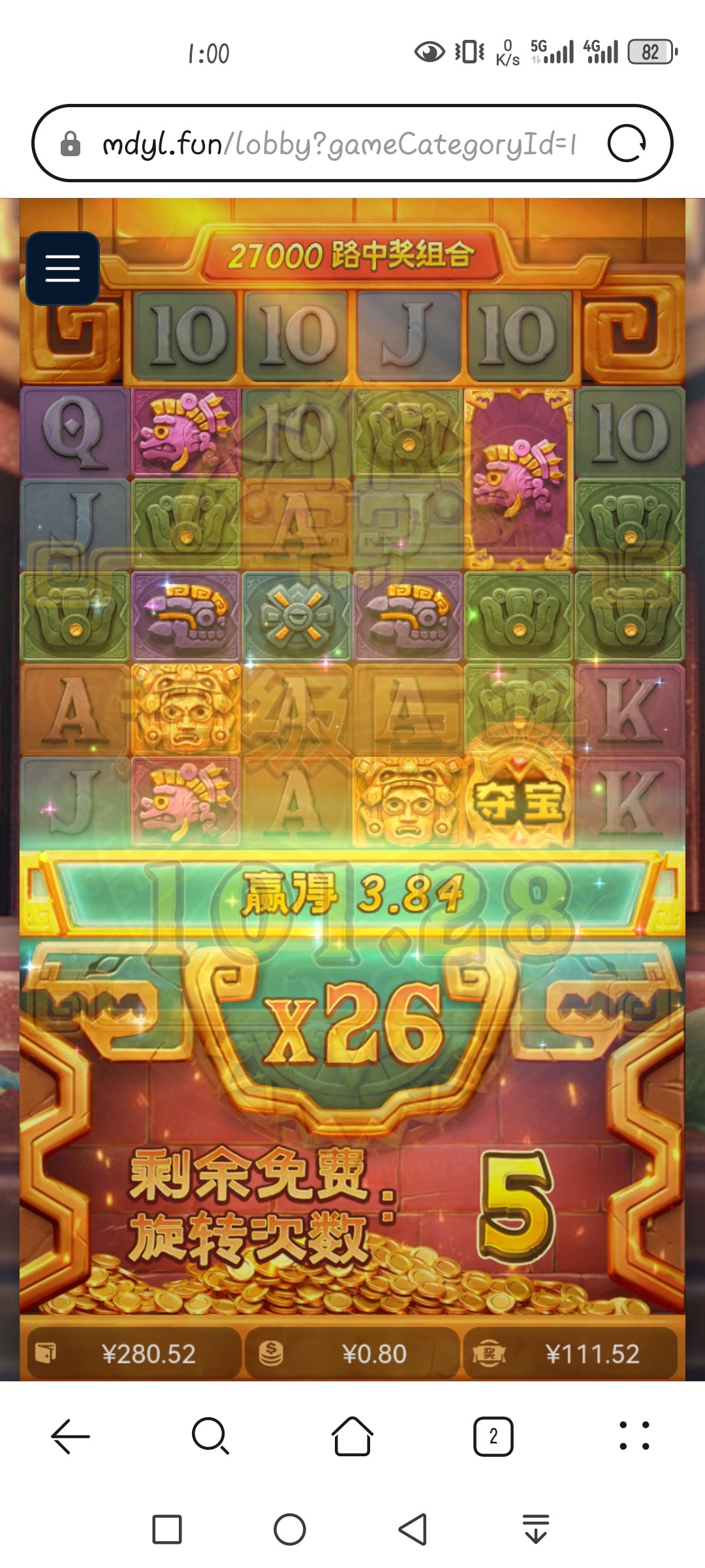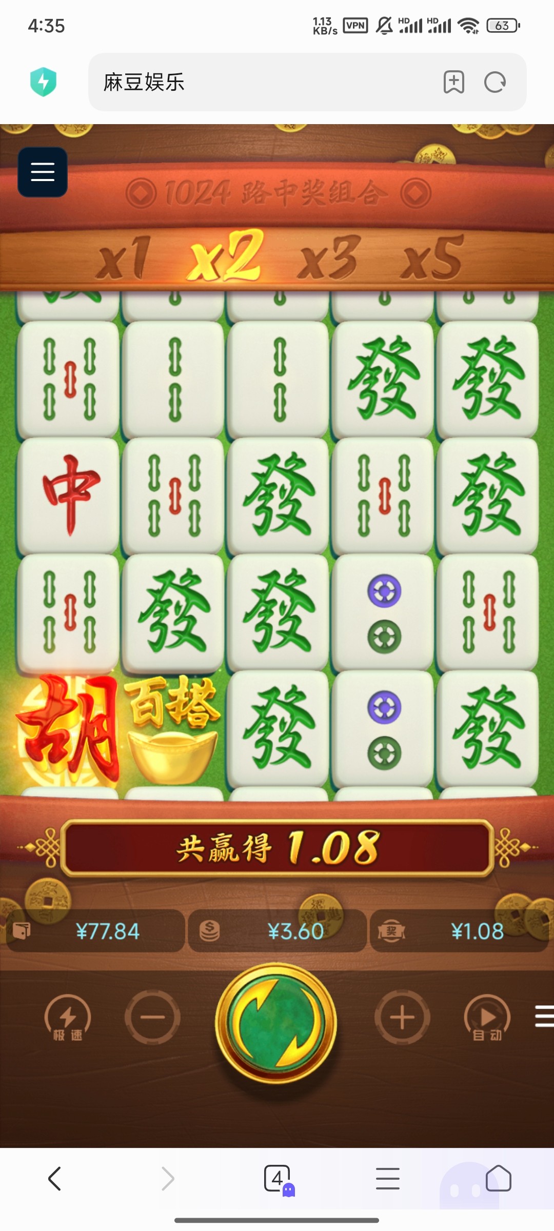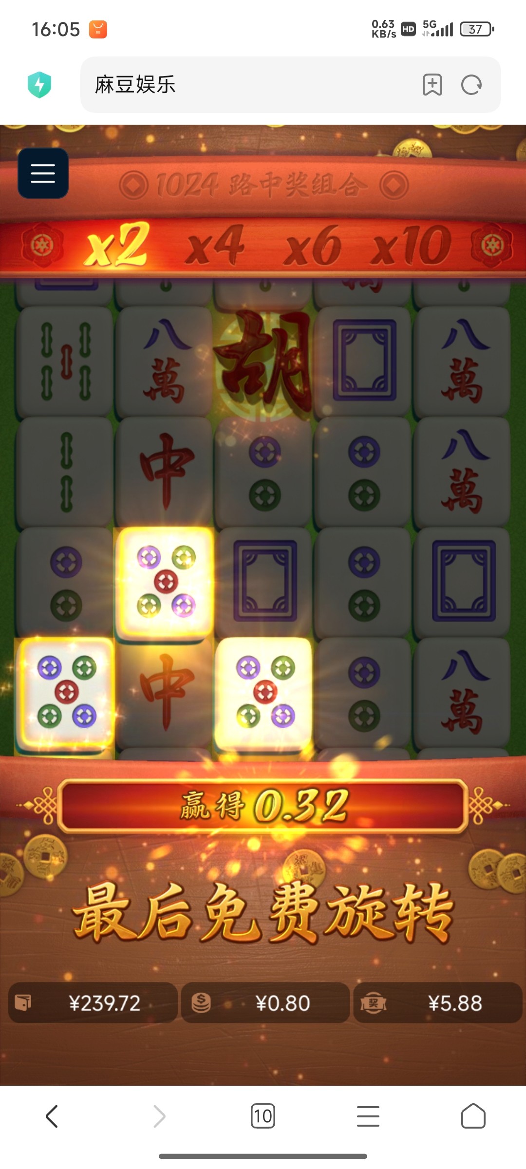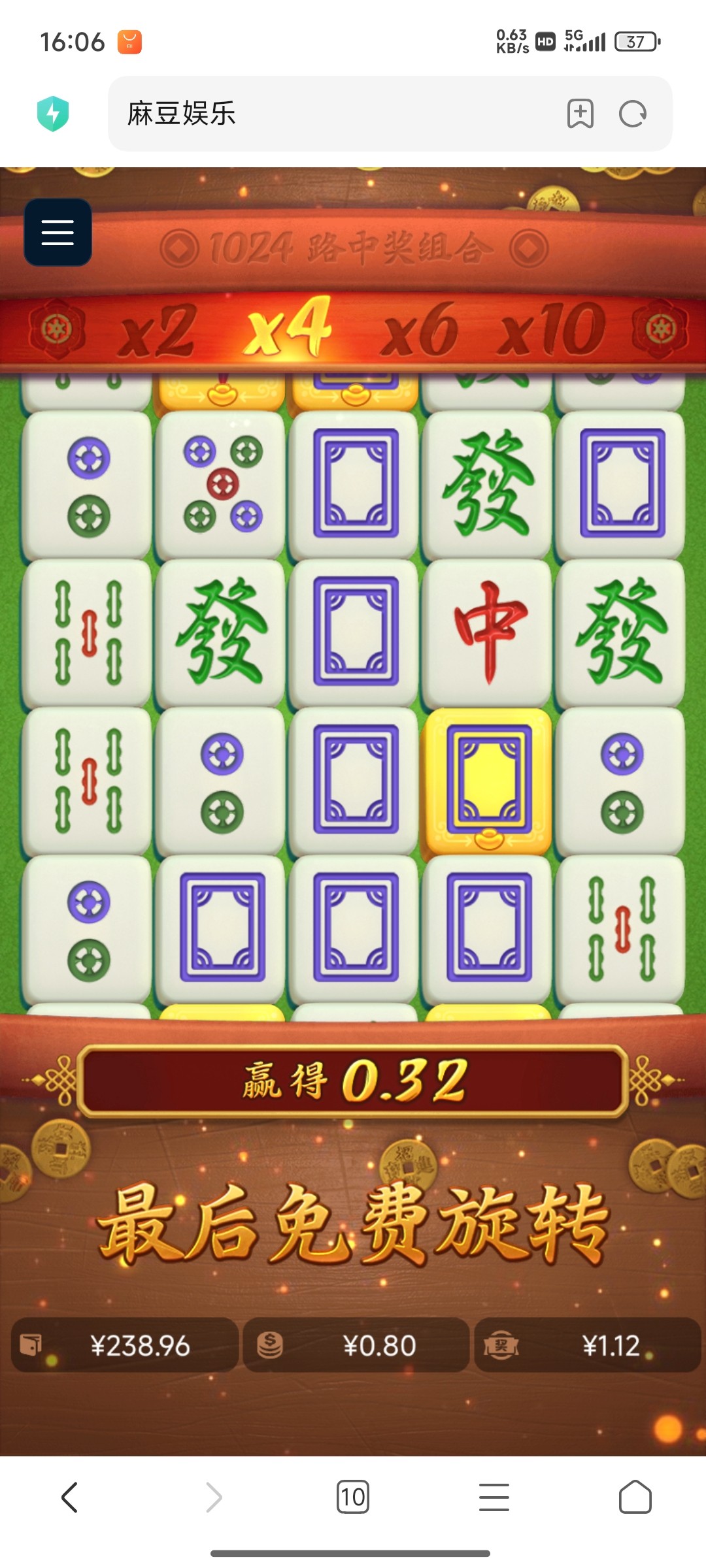 一玩一个不吱声,麻将进了四次免费,4次都是5倍以内,看起来路子贼好,每次都是差一个爆大奖,这定好的麻将
