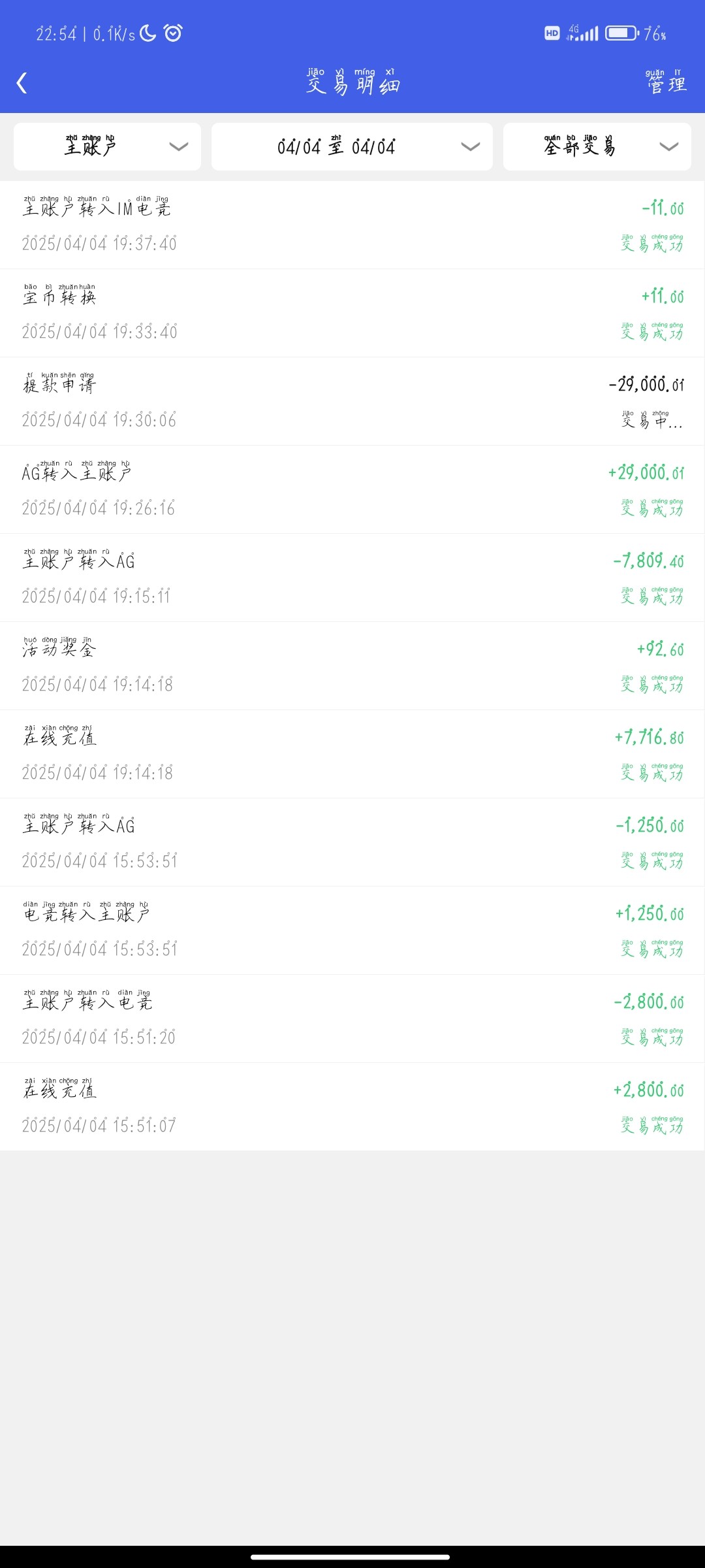 4月4号充值了2800元支付宝,7716元的U