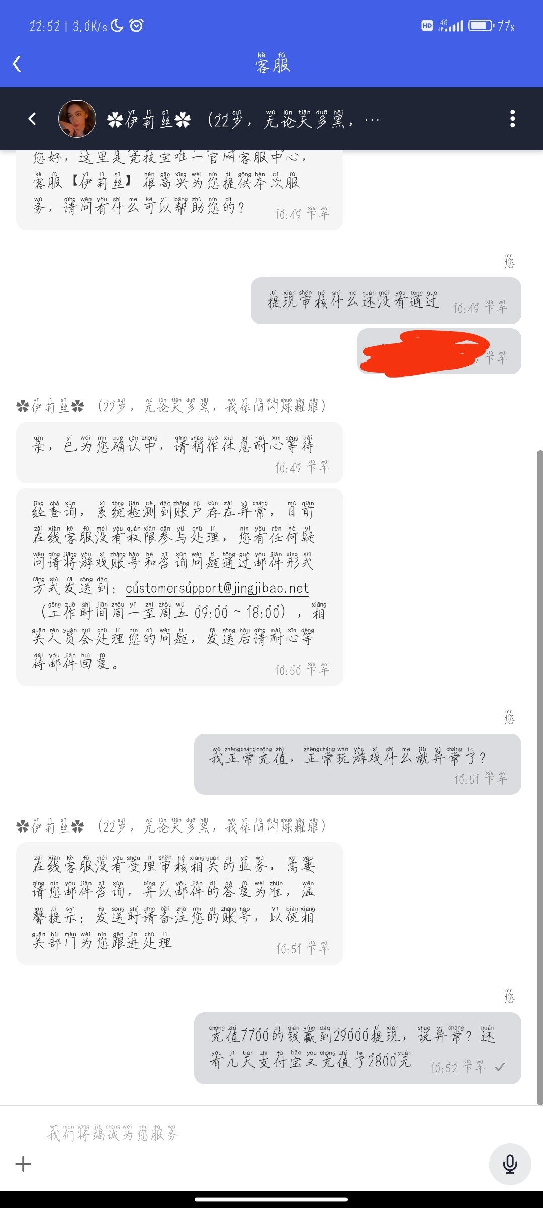 ,正常玩游戏盈29000元,提款说需要身份证审核,我都提供了,提供一个小时后又说系统检测异常
