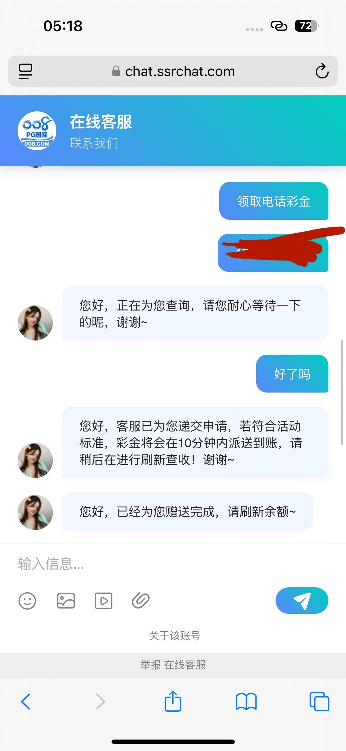 没有收到电话 很久之前充值过 008.com 出200