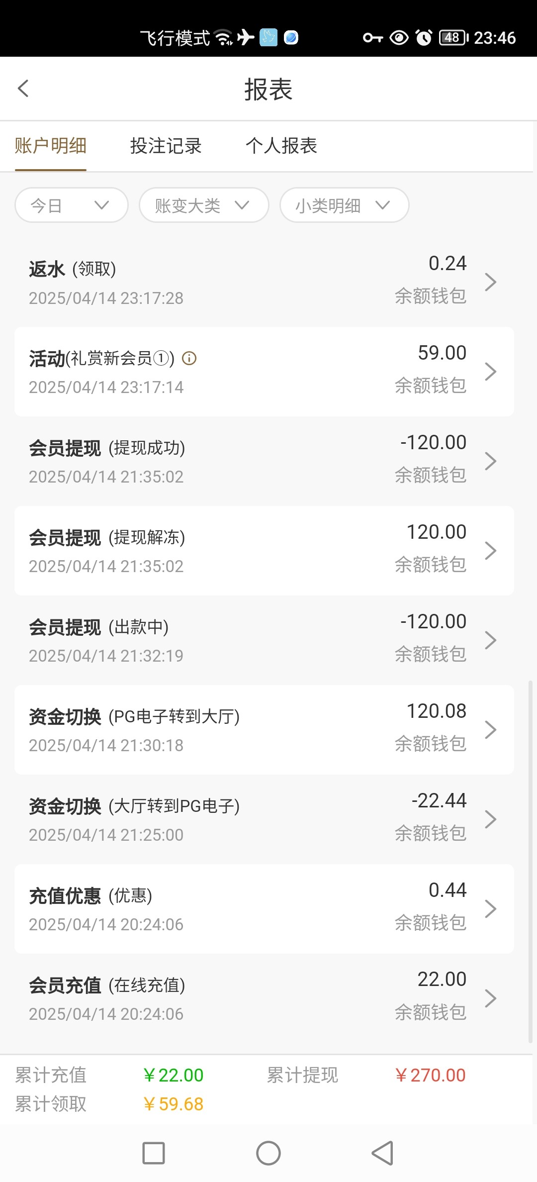 充值22想申请59玩玩,半天不送提了20