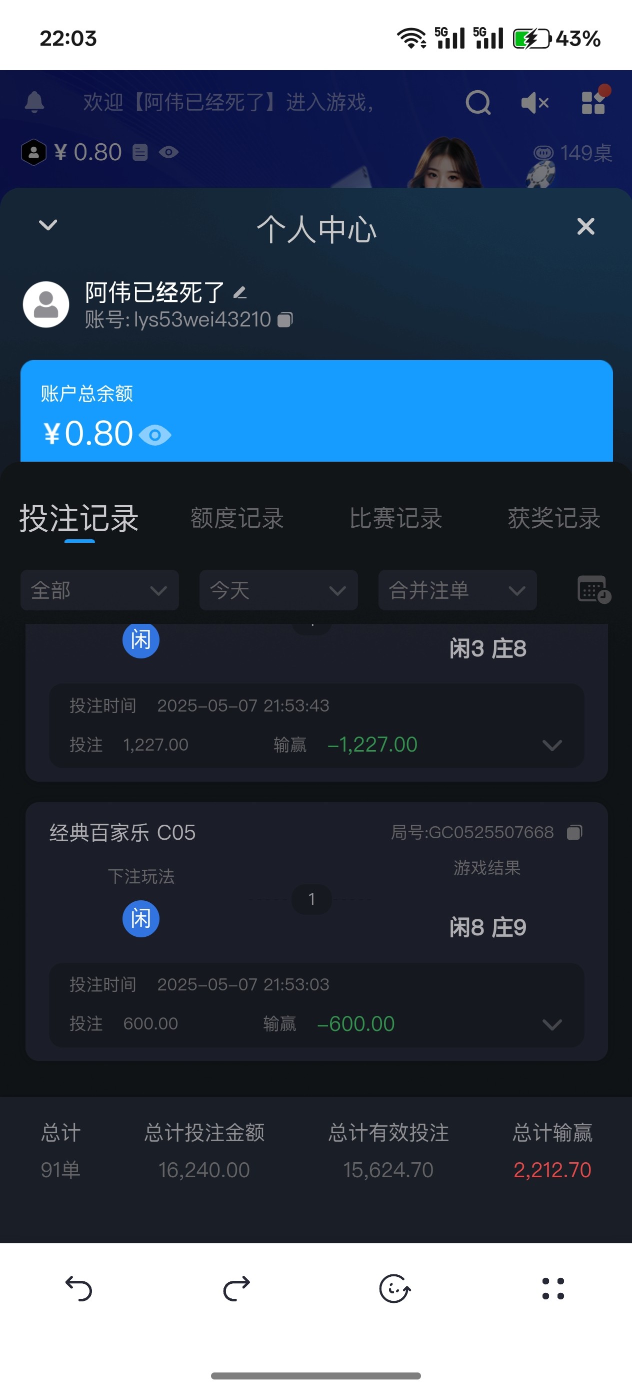 雍和 输光了,还陪1千
