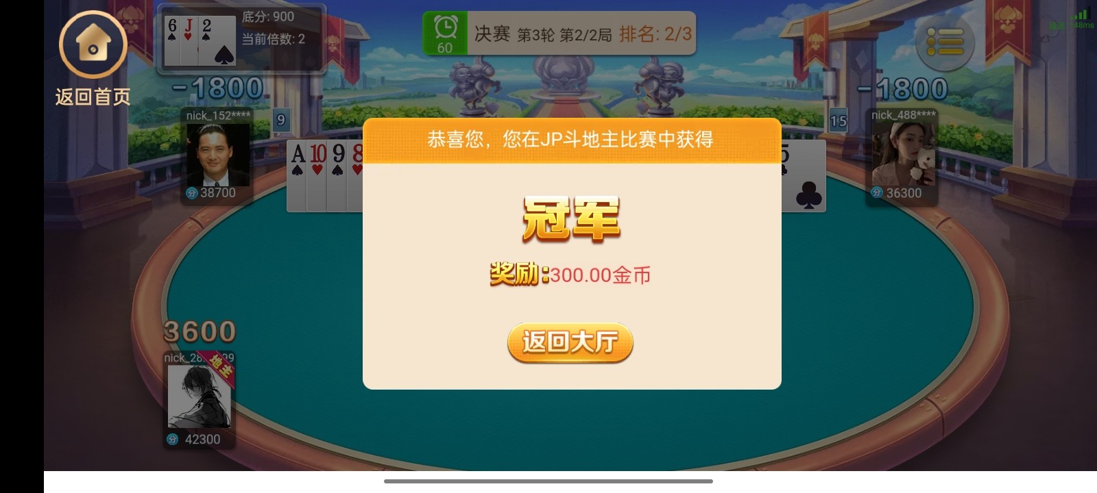 刚好倒下斗地主给了