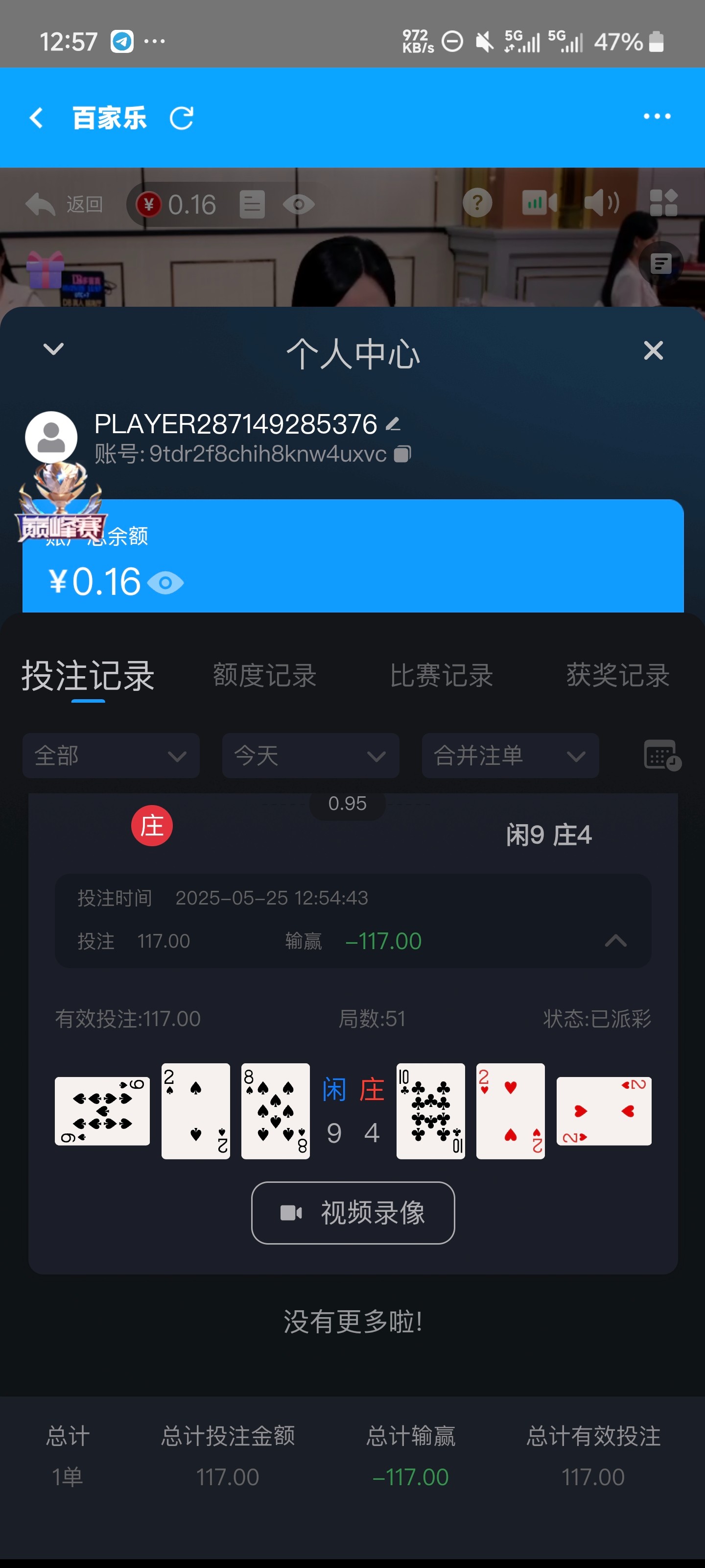太没意思了,刚下载好几年没登录的号,里面卡有0.87,进去0.2顺手拉了两三次直接到了30几块钱,然后第二次直接进免费给了600多倍进百家一把杀光,tmd